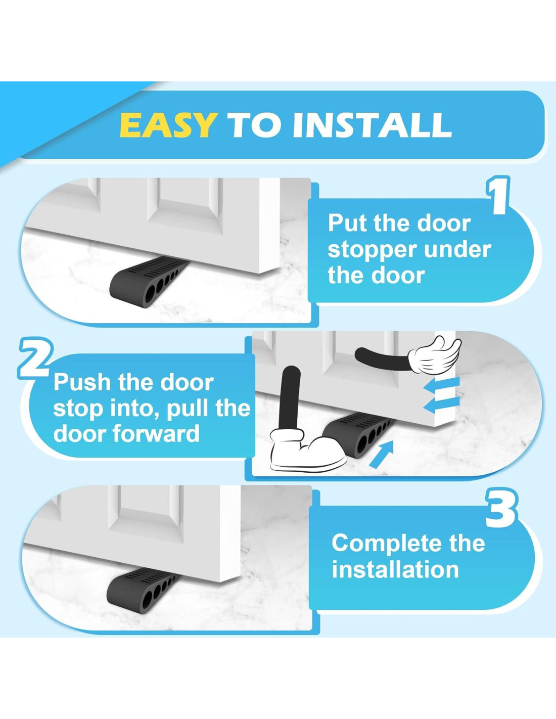- FÁCIL DE USAR Y FÁCIL DE ALMACENAR: El calzo de puerta HELEMAN solo necesita ser colocado en la parte inferior, no se requiere perforación ni tornillos. Coloca la cuña debajo de la puerta - empuja el calzo con tus pies y tira de la puerta con tu mano - deja que la cuña se quede atascada - completa la instalación. El calzo de puerta HELEMAN tiene soportes adhesivos, puedes almacenar fácilmente los calzos detrás de la puerta cuando no estén en uso, no es fácil de perder. Las cuñas te permiten moverte libremente sin tener que abrir y cerrar la puerta cada vez.