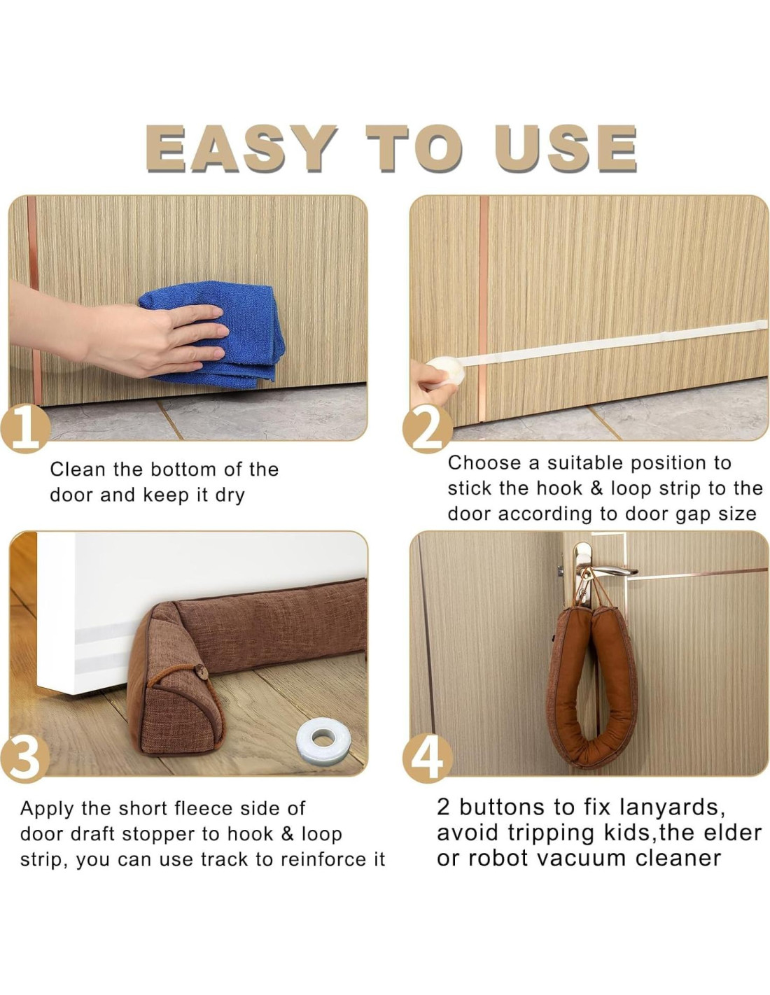 - Conveniente de Usar: Equipado con 1 rollo de tira adhesiva de 2 metros y 4 tachuelas, te ayuda a fijar el tope de draft para la parte inferior de la puerta firmemente, para evitar colocar el tope repetidamente al abrir y cerrar la puerta