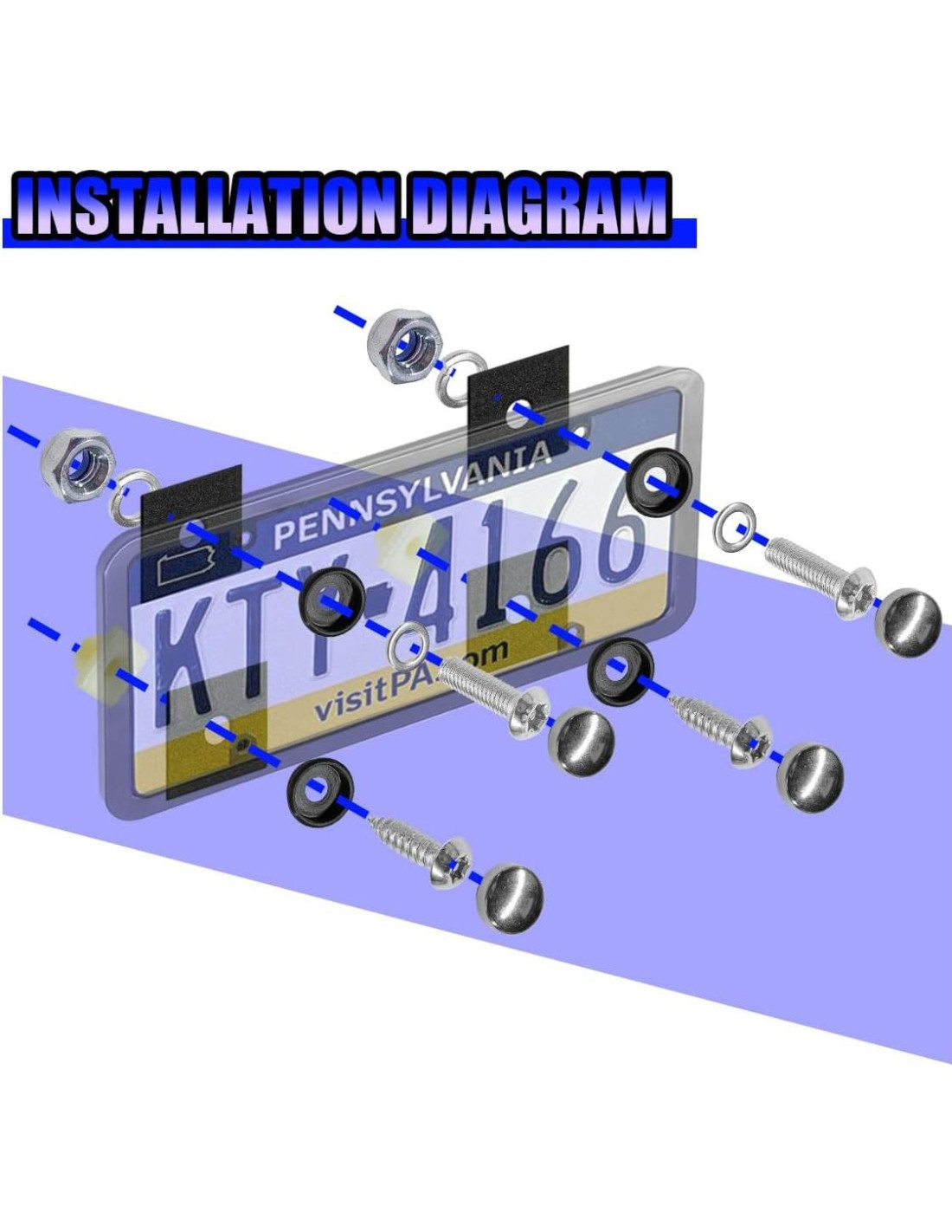 - [El Paquete Incluye] : Recibirás 2 llaves, 4 tornillos de engranaje de gusano, 4 tornillos autorroscantes, 4 tuercas, 4 collares de plástico cerrados, 4 collares de plástico abiertos, 8 insertos de nylon, 8 tapas, 8 arandelas y 8 almohadillas de espuma anti-vibración, que son suficientes para el reemplazo diario. Proporciona protección duradera para tu placa de licencia o marco de placa de licencia y no causará desgaste en la pintura de tu automóvil.