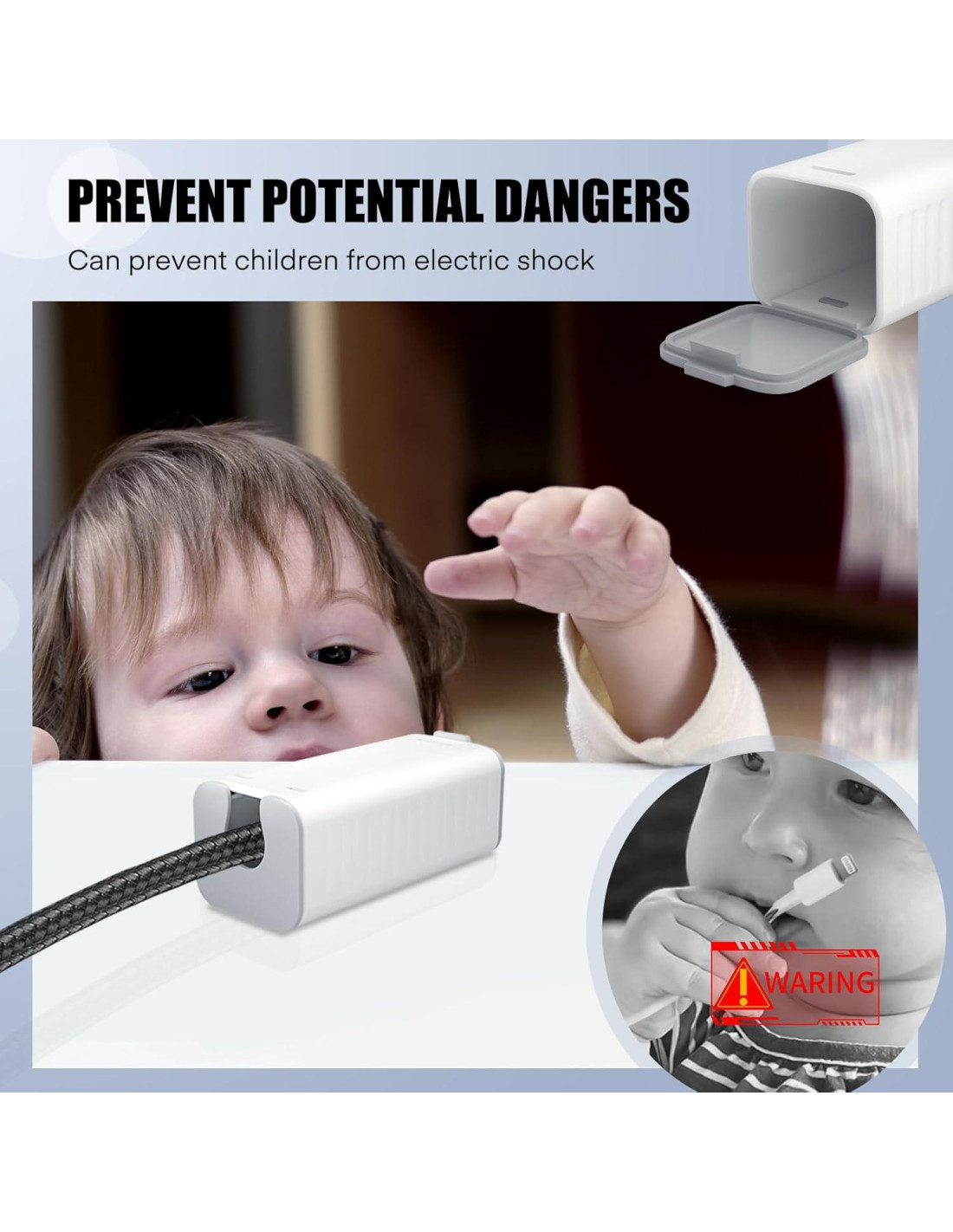 - Calidad Premium: Nuestras cubiertas de cables de cargador USB a prueba de niños están hechas de plástico ABS+PP superior, que es duradero, libre de BPA, no tóxico y sin olor. Es difícil de romper por un niño pequeño, asegurando un rendimiento duradero