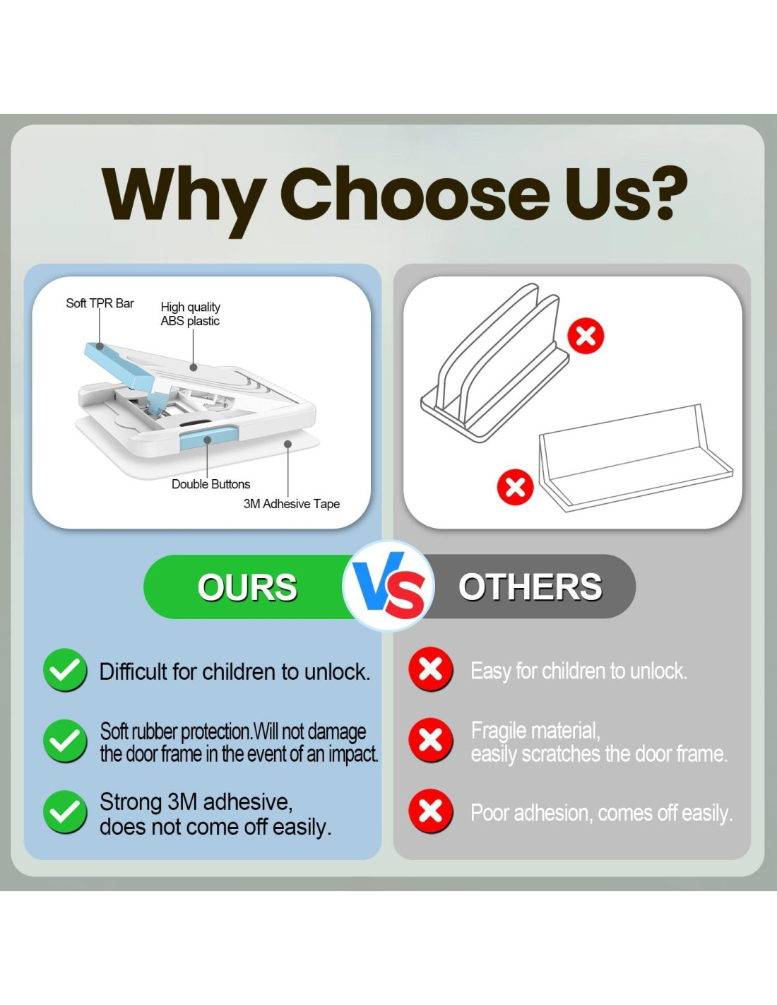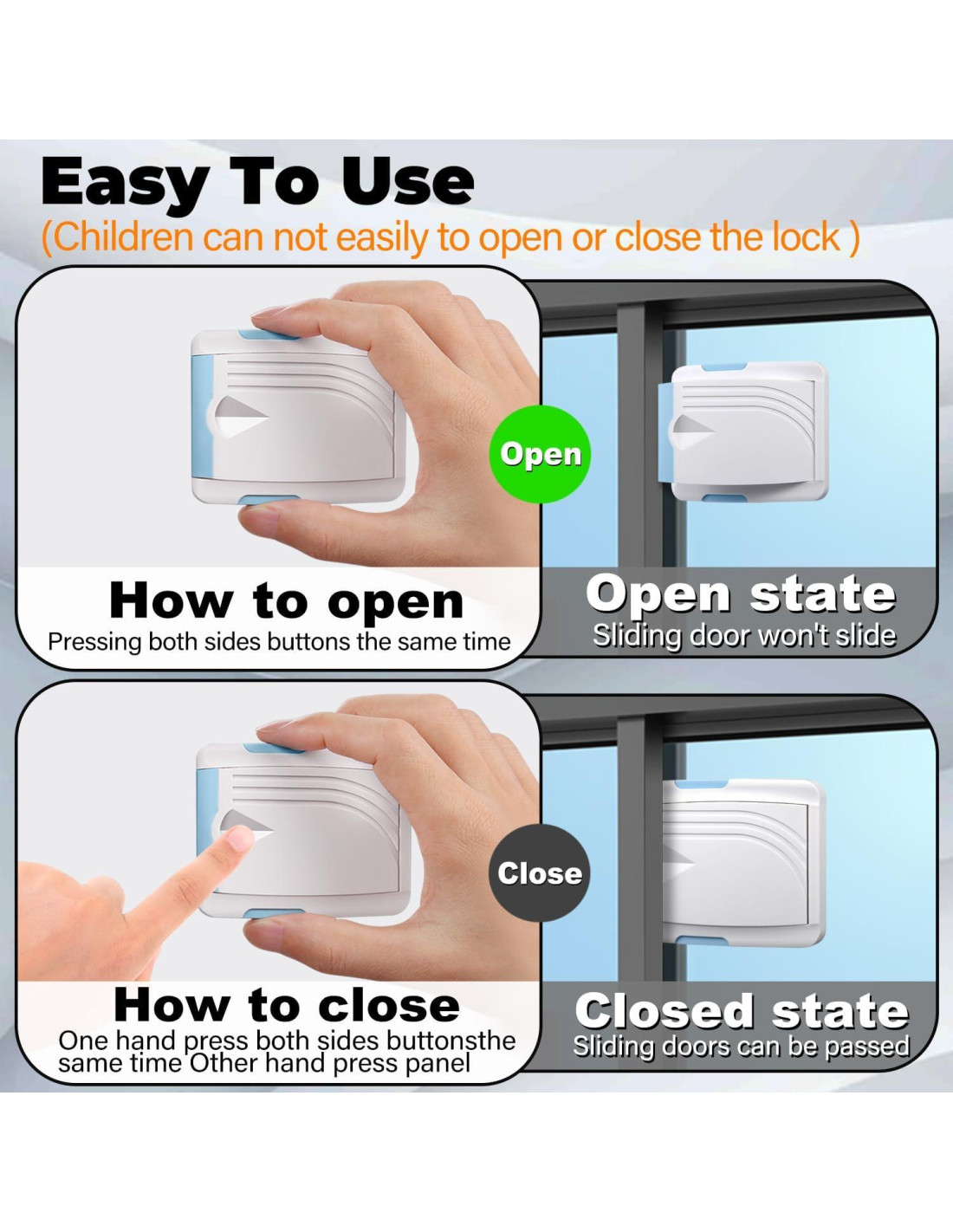 - Cerradura de puerta deslizante recién mejorada para la seguridad infantil: A diferencia de otros topes de puerta deslizante en el mercado que los niños pueden desbloquear fácilmente, nuestra cerradura de puerta de vidrio deslizante a prueba de niños requiere operación con ambas manos (presionando botones en ambos lados y presionando la placa de cubierta), lo que hace que sea mucho más difícil para los niños abrirla. Esta cerradura de puerta deslizante a prueba de niños mejorada proporciona a las familias una protección más confiable.