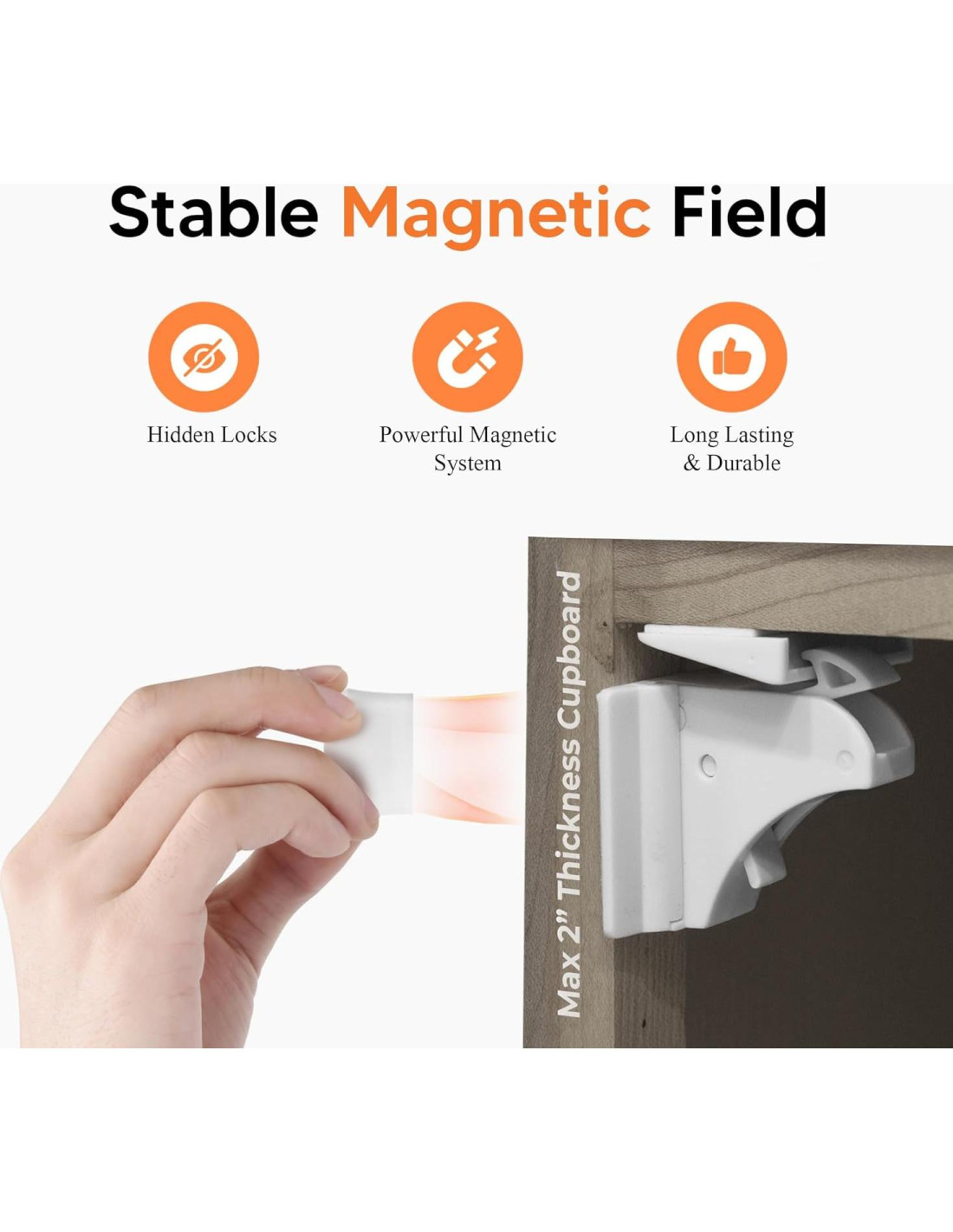 - [PROTECCIÓN INFANTIL AVANZADA] Diseñadas para evitar que los niños alcancen lugares riesgosos, estas cerraduras magnéticas para gabinetes aseguran gabinetes y cajones sin esfuerzo. Perfectas para almacenar herramientas afiladas, limpiadores y otros artículos peligrosos fuera del alcance de tu hijo.