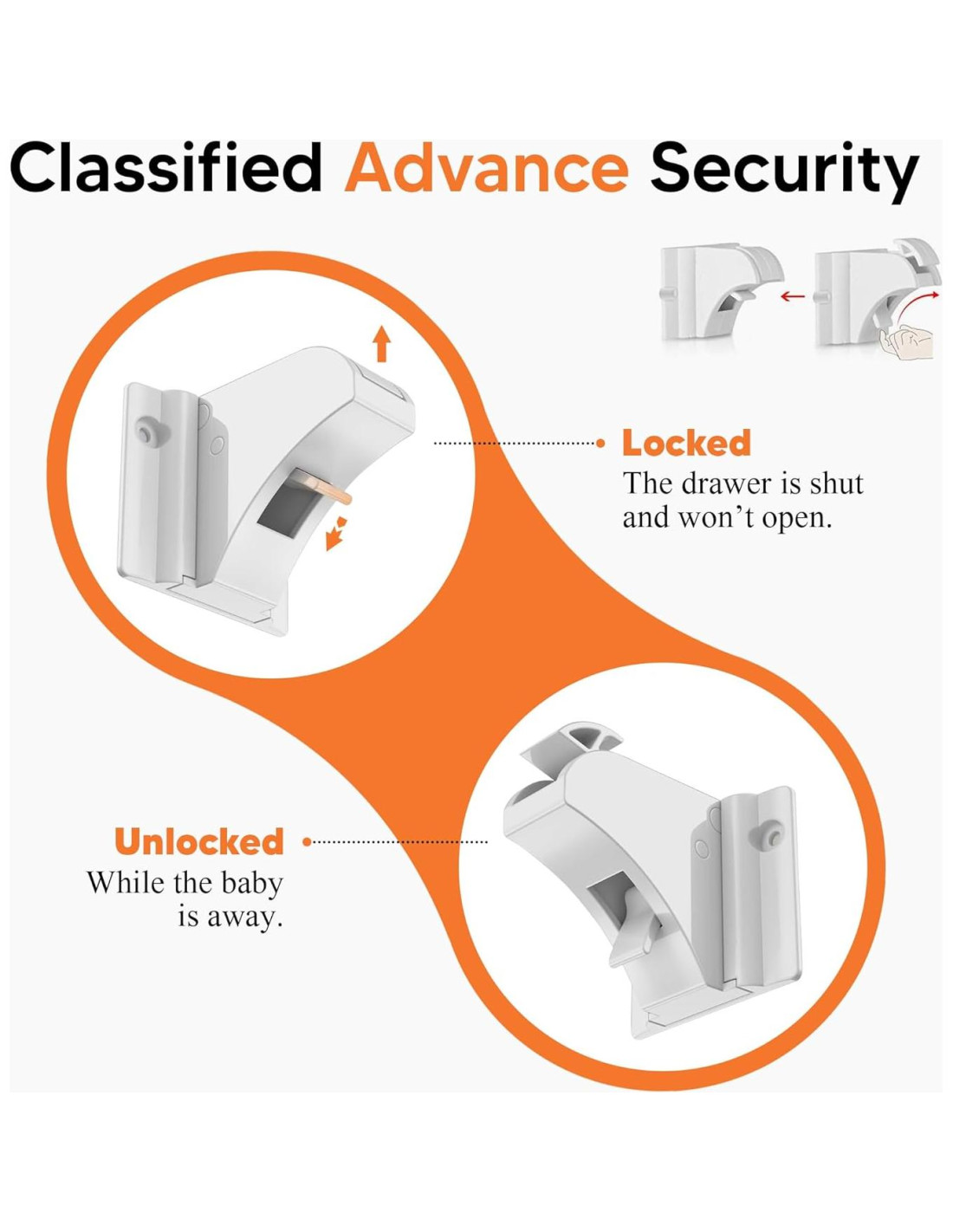 - [DISEÑO OCULTO Y SIN DAÑOS] Instaladas dentro de cajones o armarios, estas cerraduras de gabinete a prueba de niños invisibles permanecen completamente fuera de la vista. El fuerte adhesivo 3M proporciona un agarre seguro, sin necesidad de perforaciones ni herramientas. Se incluyen tornillos opcionales para mayor resistencia.