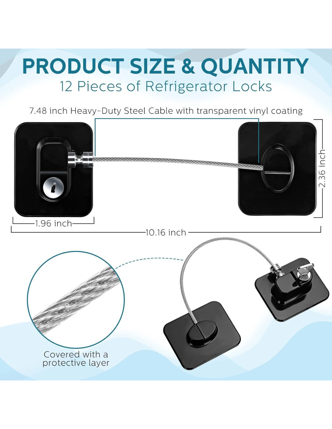 - Cantidad Suficiente: recibirás 12 piezas de cerraduras para refrigerador negras, cada cerradura para refrigerador está equipada con 1 llave, cantidad suficiente para satisfacer tus necesidades diarias de proteger a los niños de abrir puertas de refrigeradores o gabinetes, etc.