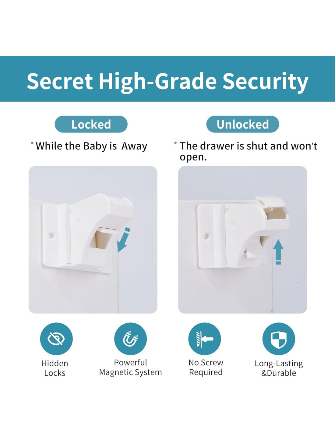 - Protección a Prueba de Niños: Descansa tranquilo sabiendo que estas cerraduras magnéticas bloquean de manera segura a los niños pequeños de abrir gabinetes llenos de herramientas afiladas, productos químicos o objetos frágiles. La construcción duradera soporta tirones, permitiendo que los niños exploren de manera segura mientras mantienes el control.