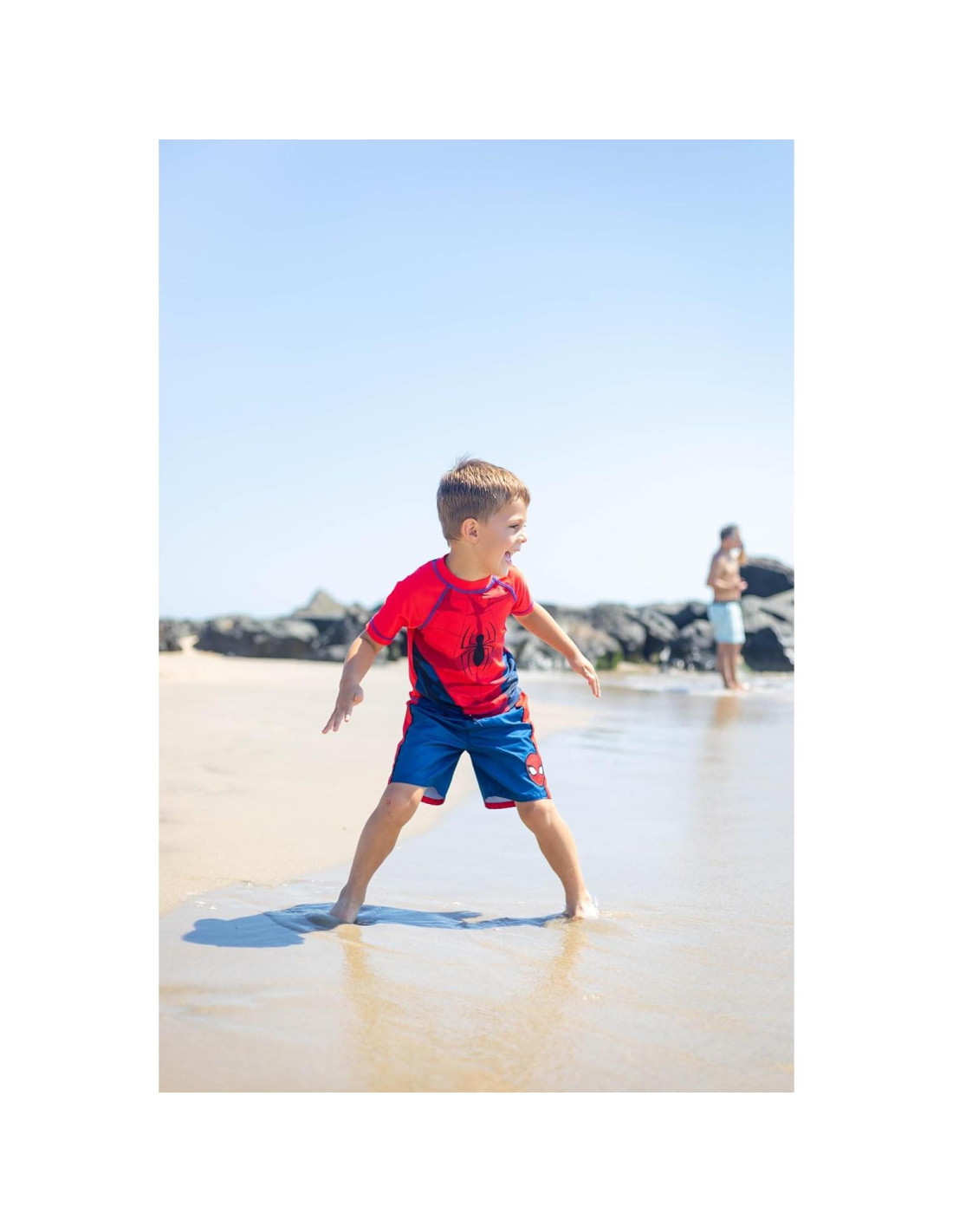 - Camiseta de baño de manga corta para niños pequeños con licencia oficial de Marvel Spider-Man y pantalones de baño