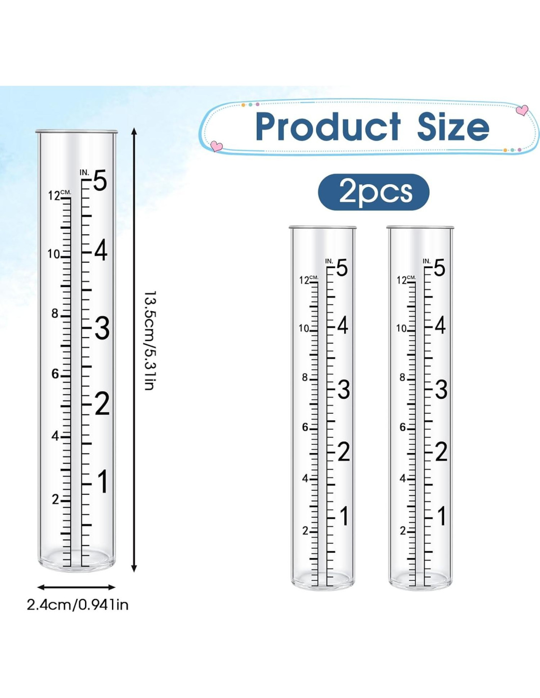- [Juego de Medidores de Lluvia de 2 Piezas] Este juego de medidores de lluvia incluye 2 pcs 5" tubos de reemplazo transparentes para medidores de lluvia, proporcionándote un respaldo o permitiéndote medir la lluvia en múltiples ubicaciones. Perfecto para aquellos que necesitan soluciones confiables de medidores de lluvia exteriores para su patio o jardín.