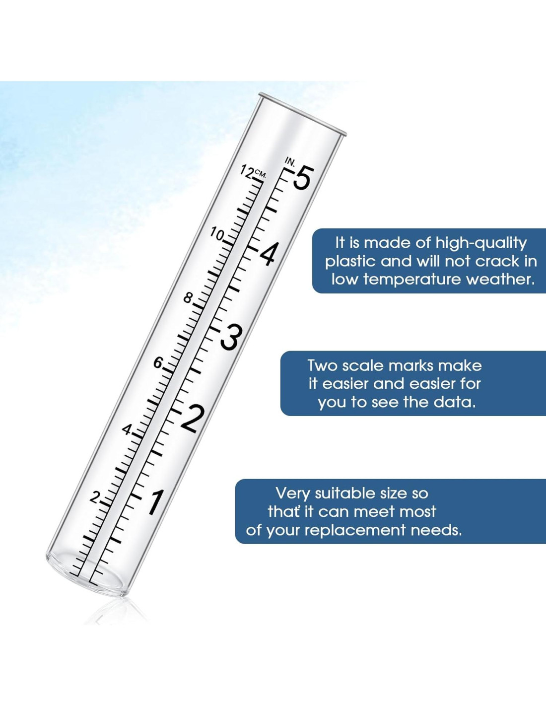 - [Aplicación Versátil] Nuestro tubo de reemplazo para medidor de lluvia es adecuado para una amplia gama de aplicaciones, desde monitorear la lluvia en tu jardín hasta servir como un medidor de lluvia exterior confiable para tu patio. Su construcción duradera y medidas claras lo convierten en una herramienta imprescindible para cualquier entusiasta del clima.