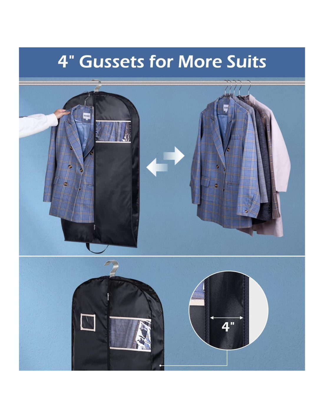 - Capacidad Grande: Bolsa de ropa colgante con bolsillos de 10.16 cm, lo suficientemente ancha y grande para acomodar 4 trajes de hombre o abrigos de mujer sin aplastarlos, proporciona más espacio que otras bolsas.