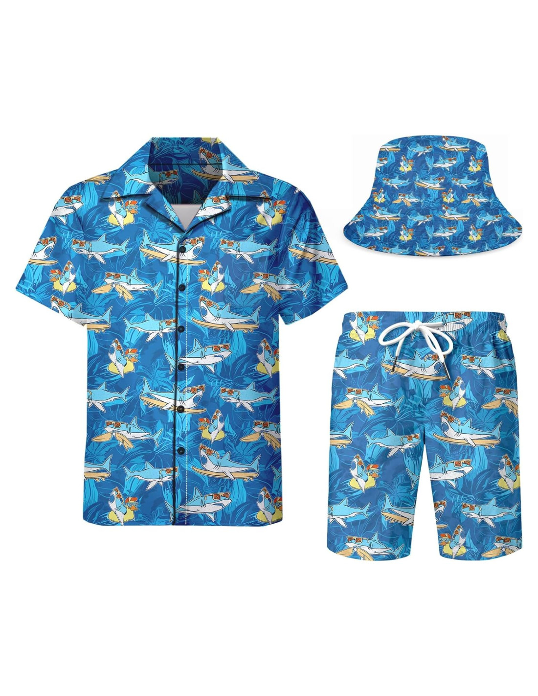 - Camisas hawaianas divertidas para hombres La camisa y los pantalones cortos están hechos de una tela suave y cómoda, que es ligera, suave y transpirable, con un ajuste holgado para mantenerte fresco y relajado. Camisa con cuello cubano, cierre de botones y bolsillo en el pecho izquierdo. Pantalones cortos de tela de secado rápido, cordón ajustable y elástico en la cintura.