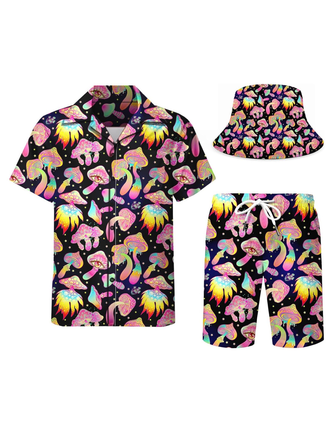 - Camisas hawaianas divertidas para hombres La camisa y los pantalones cortos están hechos de una tela suave y cómoda, que es ligera, suave y transpirable, con un ajuste holgado para mantenerte fresco y relajado. Camisa con cuello cubano, cierre de botones y bolsillo en el pecho izquierdo. Pantalones cortos de tela de secado rápido, cordón ajustable y elástico en la cintura.