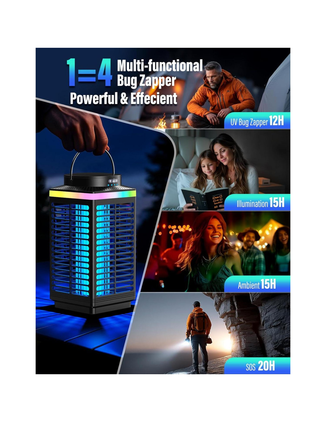 - [3 Modos de Iluminación para Cada Ocasión] Elige entre tres modos de iluminación: blanco brillante para iluminación, RGB para ambiente y luz azul para máxima atracción de insectos. Todos los modos se pueden usar juntos para una experiencia versátil, ya sea como trampa para mosquitos en exteriores o trampa de insectos a batería. Ideal para cualquier entorno al aire libre como trampa de insectos en patio o trampa para mosquitos en jardín.