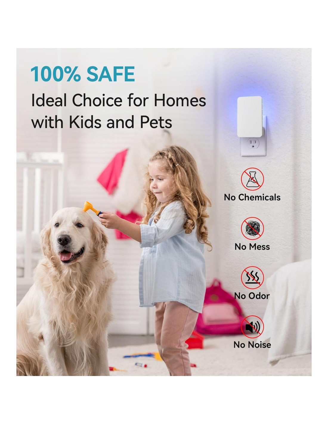 - [Amigable con Niños y Mascotas] A diferencia de los aerosoles o químicos, nuestro matamoscas de fruta para interiores funciona sin pesticidas. Sin toxinas, sin olores y sin descargas, el capturador de insectos enchufable opera de manera silenciosa y eficiente. Las trampas para polillas y moscas para interiores son completamente seguras para usar alrededor de niños y mascotas, proporcionando un control de plagas efectivo sin preocupaciones.