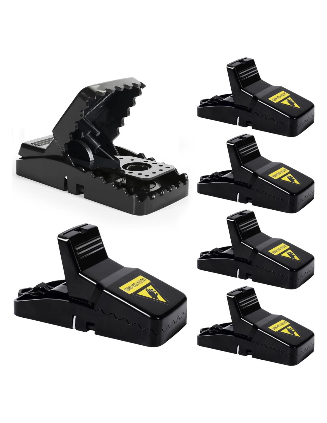 - [Fácil de Configurar Trampas para Ratones] Solo coloca el cebo en la taza de cebo y presiona el resorte de las trampas para roedores por fuera para completar la configuración. Puedes usar trampas para ratones en interiores y exteriores. No toques los ratones después de configurarlas, y mantenlas alejadas de niños, ancianos y mascotas para evitar lesiones.