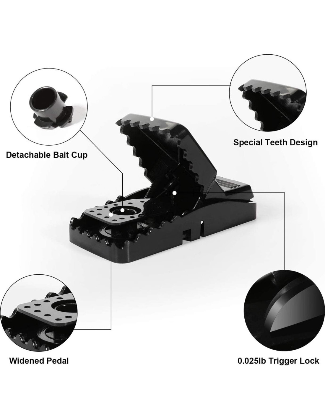 - [Seguro de Usar] El nuevo Asesino de Ratones de Poder Humano no tóxico, diseño seguro y sin contacto, puedes colocar el cebo de forma segura sin preocuparte de que tus dedos queden atrapados. Di adiós a los métodos de control de plagas ineficaces y protege tu hogar de ratas, ratones, ratones pequeños, etc. Se recomienda usar una pequeña cantidad de mantequilla de maní como cebo.