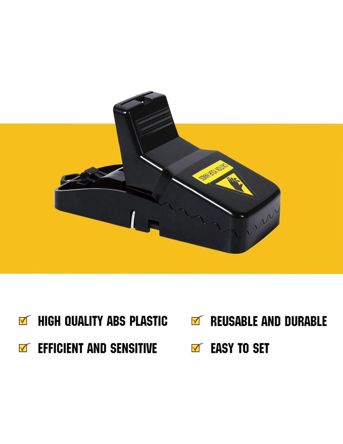 - [Alta Sensibilidad y Muerte Rápida] Las mejores trampas para ratones para el hogar adoptan un diseño de doble resorte, fuerte fuerza de mordida, en comparación con la trampa para ratones de la versión original, la sensibilidad y eficiencia se han mejorado considerablemente, 0.025 libras (11.34 gramos) puede activar rápidamente la trampa para ratones.