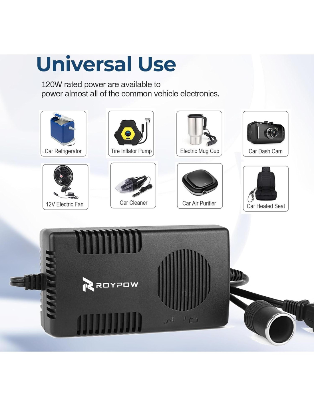 - [Lo que recibirás] : Conjunto de Adaptador AC a DC RoyPow C120; Devolución incondicional de 30 días; Garantía de 18 meses; Soporte técnico gratuito de por vida.