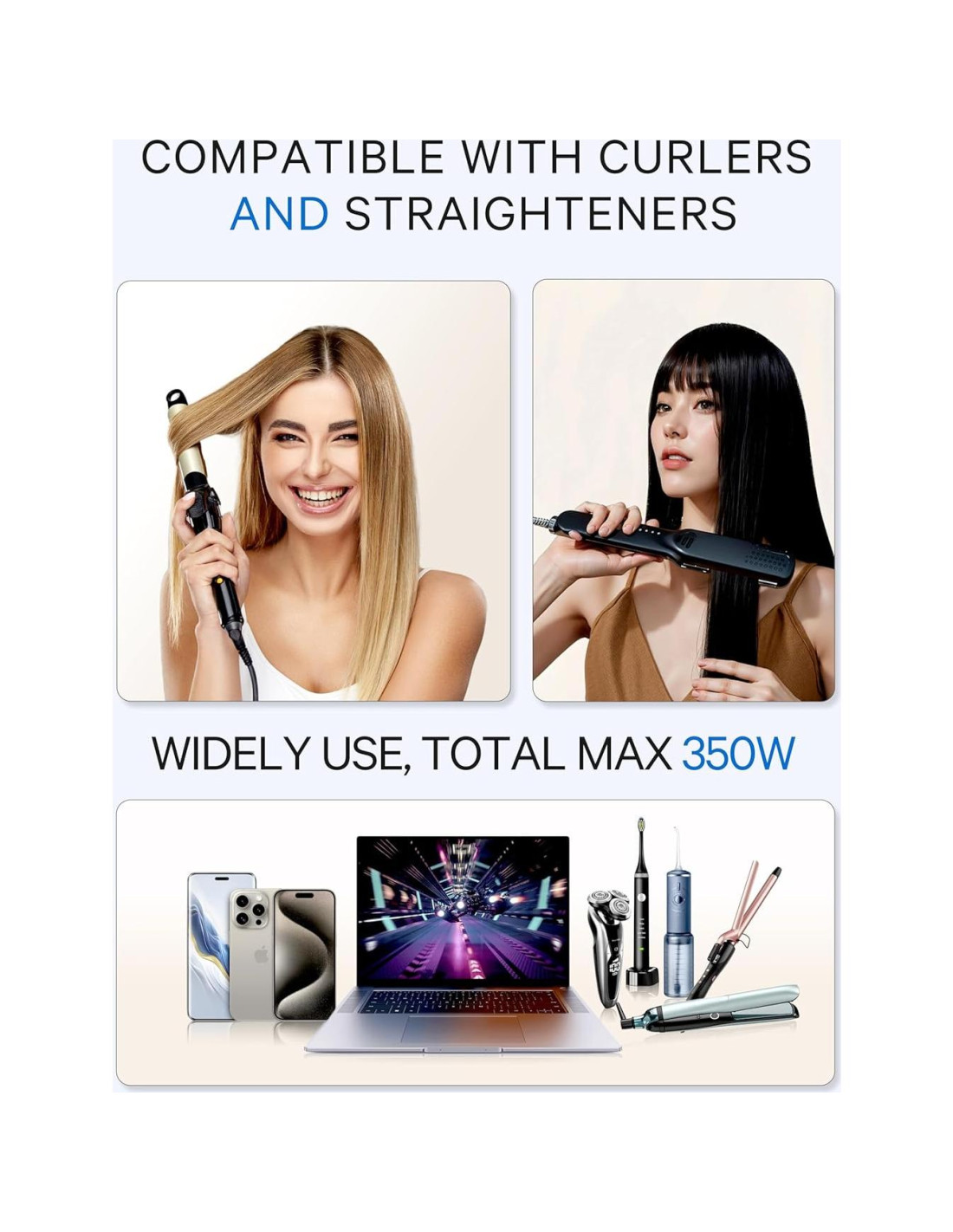 - [Soporta Rizadores y Planchas de Cabello] Puede manejar dispositivos de hasta 350W, incluyendo tu máquina CPAP, afeitadora eléctrica, computadora portátil, extractor de leche, cepillo de dientes eléctrico, ventilador, nebulizador, consola de juegos, televisor, reproductor de DVD, y más.