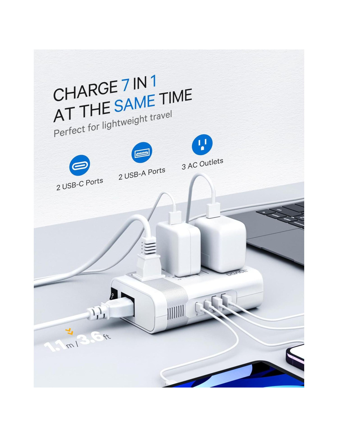 - [Carga Rápida 7-1] Carga hasta siete dispositivos a la vez con cuatro puertos USB (A1: 5V 2.4A, C1: 5V 3A) y tres enchufes de CA, ofreciendo una salida total de 350W. *Nota: La salida USB está completamente aislada de la energía de CA para proteger todos tus dispositivos.