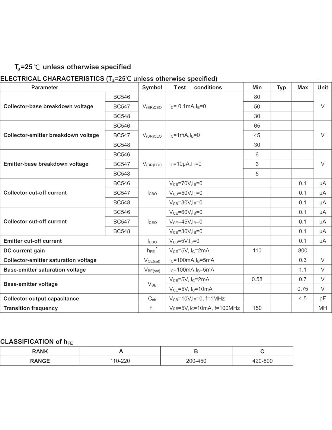 - Número de modelo del artículo: Transistor NPN BC547C 20PCS