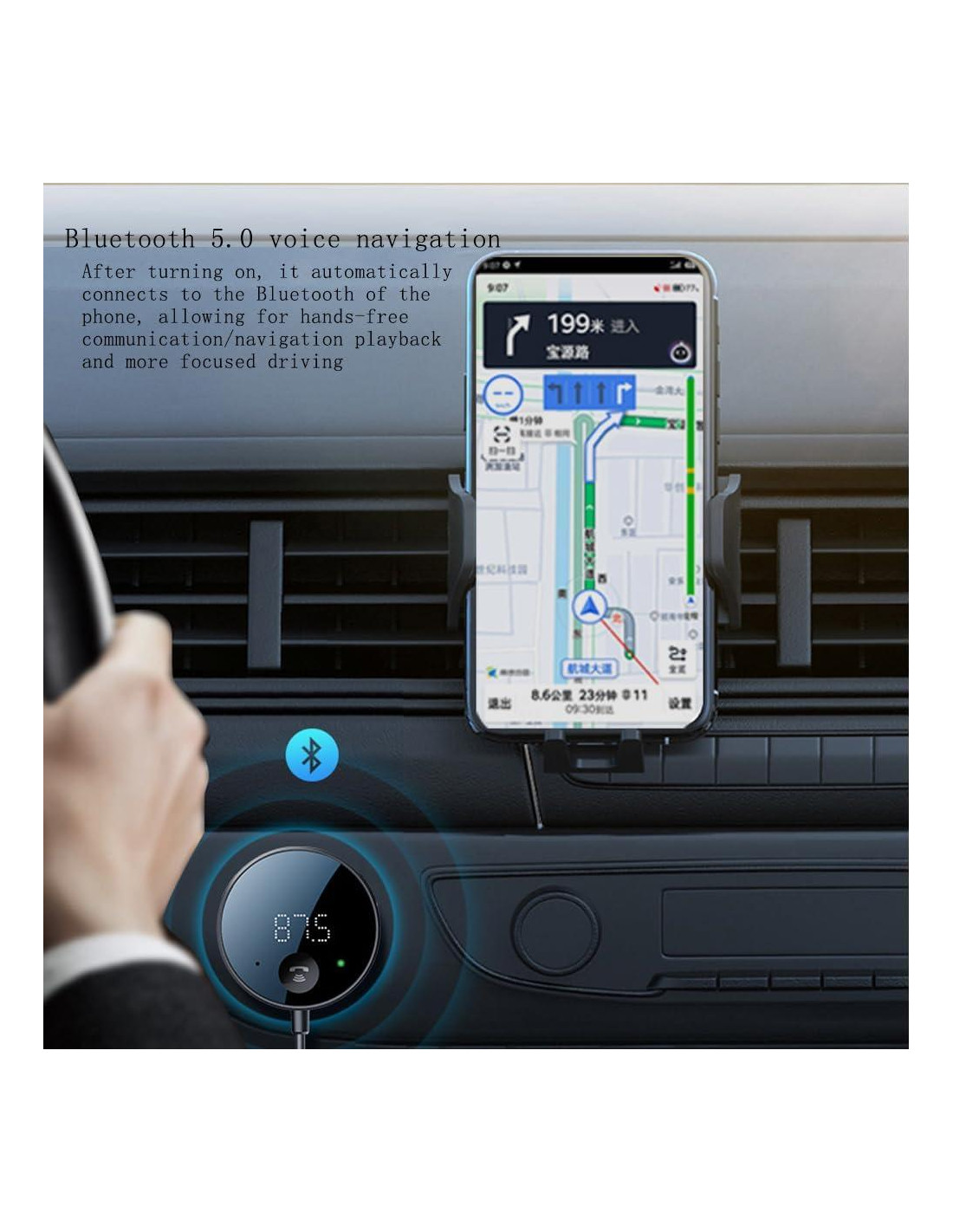 - [Soporte AUX OUT] Puedes elegir un cable de audio AUX, que se puede conectar directamente al sistema de audio del coche sin necesidad de modulación FM para evitar interferencias de señal inalámbrica, resultando en una calidad de sonido más clara y llamadas más estables