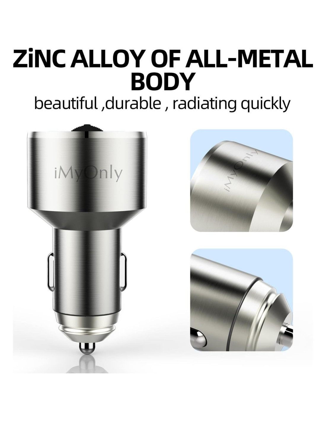 - Este Adaptador de Coche Bluetooth utiliza una construcción de aleación de zinc, haciéndolo hermoso, robusto y duradero, también con excelente rendimiento térmico. Puede exportar rápidamente el calor generado durante el proceso de carga, prolongando así la vida natural de la máquina. No se derretirá ni se incendiará, ¡por lo que es más seguro que uno de plástico!