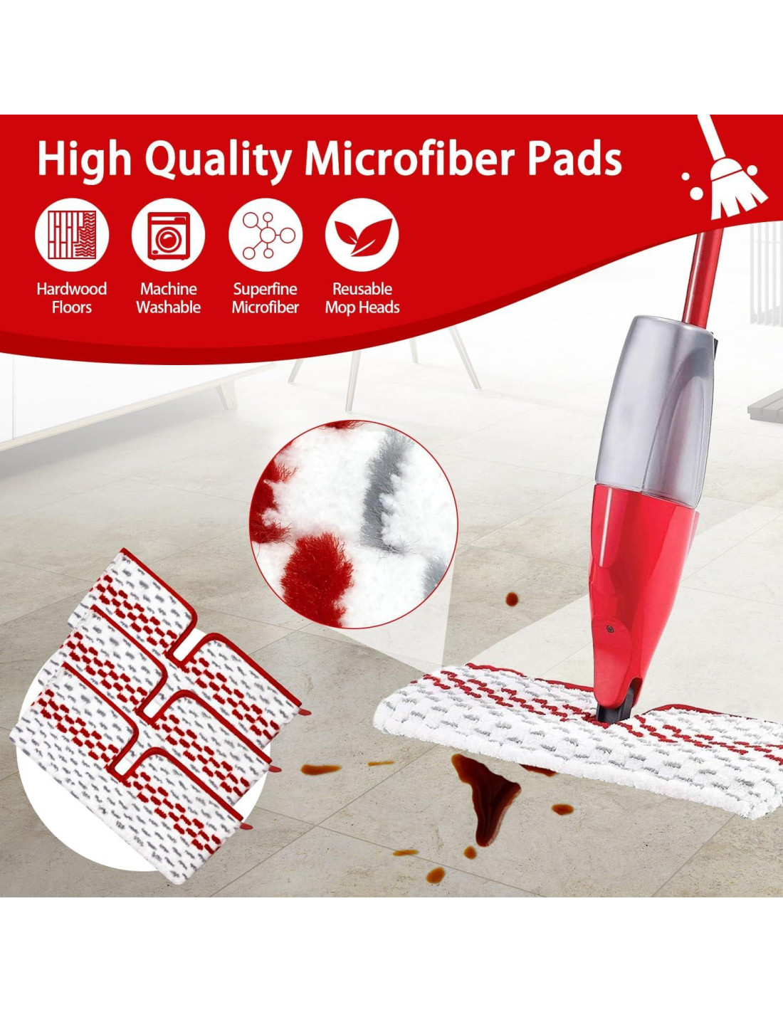 - Las recargas de mopas de spray de microfibra de doble cara cuentan con que puede eliminar desordenes pesados adheridos en las zonas de fregado, especialmente las franjas texturizadas rojas pueden atrapar y limpiar profundamente la suciedad.