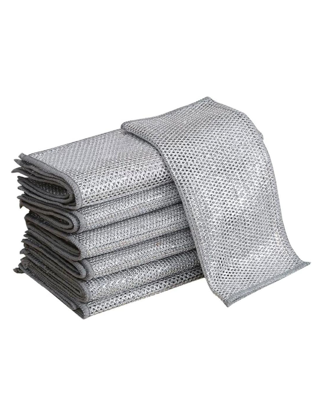 Mejora la limpieza de tu cocina con nuestros paños de acero inoxidable de 10 piezas, diseñados con una construcción de triple capa que presenta algodón absorbente para un mayor poder de fregado. Estos paños de limpieza metálicos sin rayas limpian de manera segura utensilios delicados como sartenes antiadherentes, ollas de cerámica y cristalería sin causar daños. Fabricados con fibras metálicas de alta calidad, cada paño ofrece durabilidad de alta resistencia y un rendimiento duradero, lo que los hace ideales para eliminar manchas de comida difíciles, grasa y suciedad en platos, fregaderos, cocinas, encimeras, bandejas de horno y más. El diseño reutilizable y de secado rápido ayuda a eliminar olores y reduce tu necesidad de toallas de papel, apoyando un estilo de vida ecológico. Perfectos para limpieza en húmedo y seco, estos paños de fregado aptos para lavavajillas se enjuagan fácilmente y resisten la deformación, asegurando higiene con cada uso. Ya sea que estés limpiando la cocina, el garaje, el baño o incluso productos como papas y frutas, este conjunto versátil es tu solución integral.