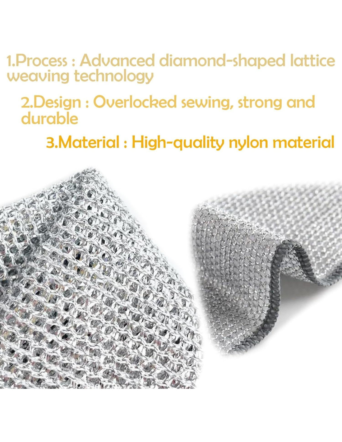 - [Tamaño y Diseño Ideal] Paño de limpieza de alambre sin rayones tamaño: 7.87 pulgadas X 7.87 pulgadas, ligeramente más grande que los paños de cocina tradicionales, limpia hasta 3 veces más rápido, la tela es suave y no daña tus manos. Es un utensilio de cocina imprescindible. Los trapos de lavado con malla de diamante y diseño de costura sobrehilada están disponibles en diseños de doble y simple capa, aumentando la fuerza sassafras, lo que mejora enormemente la eficiencia de limpieza y durabilidad.