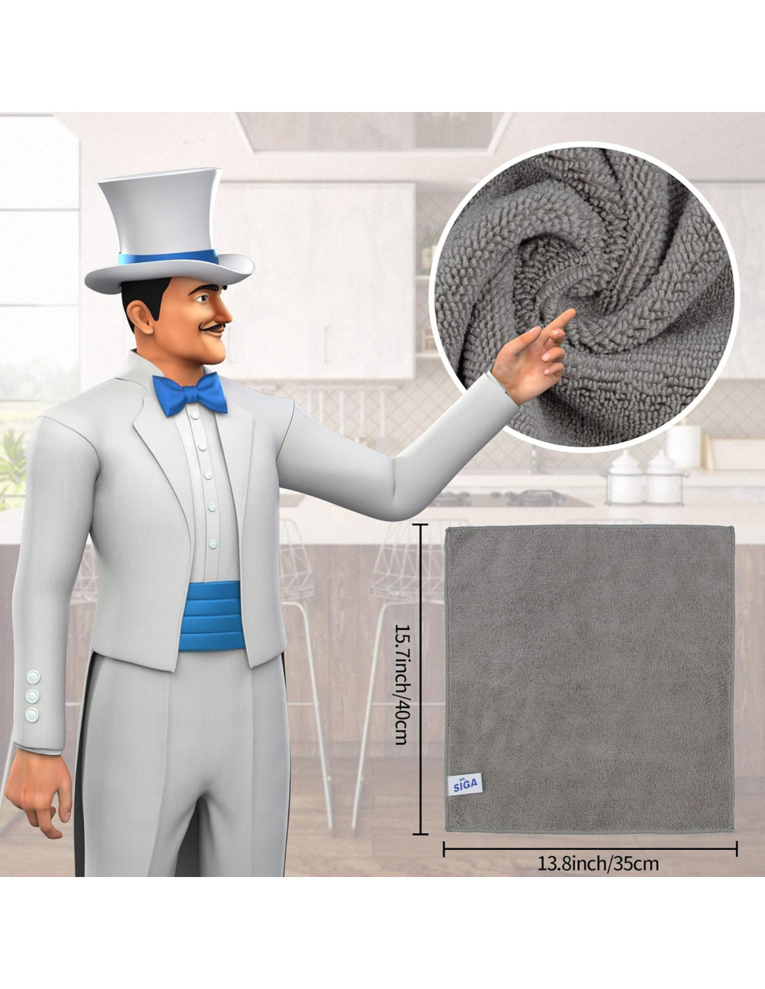 Estos trapos de limpieza no abrasivos pueden absorber agua de la encimera y mesas instantáneamente y sin pelusa ni rayas dejadas atrás. Ultra suaves y altamente absorbentes paños de microfibra, ideales para limpiar ventanas, utensilios de cocina, automóviles u otras superficies delicadas. Estas toallas de microfibra cuentan con costuras de alta calidad con bordes reforzados, son duraderas y están hechas para durar cientos de lavados. -Lavar a máquina o a mano los paños de microfibra por separado en agua tibia y detergente suave. -No usar blanqueador ni suavizante de telas. -No secar en secadora. -No planchar. -Siempre mantener seco después de su uso.