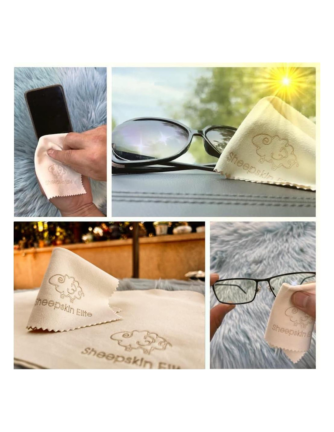- CARACTERÍSTICAS DEL PRODUCTO: A diferencia de las fibras sintéticas, este paño de gamuza natural está hecho de cuero de oveja, que es libre de rayones y súper suave con gran extensibilidad. Nuestra gamuza es muy efectiva para eliminar el polvo, las huellas dactilares y la suciedad sin dejar rayones en el lente de la cámara, gafas, pantallas, relojes, etc.