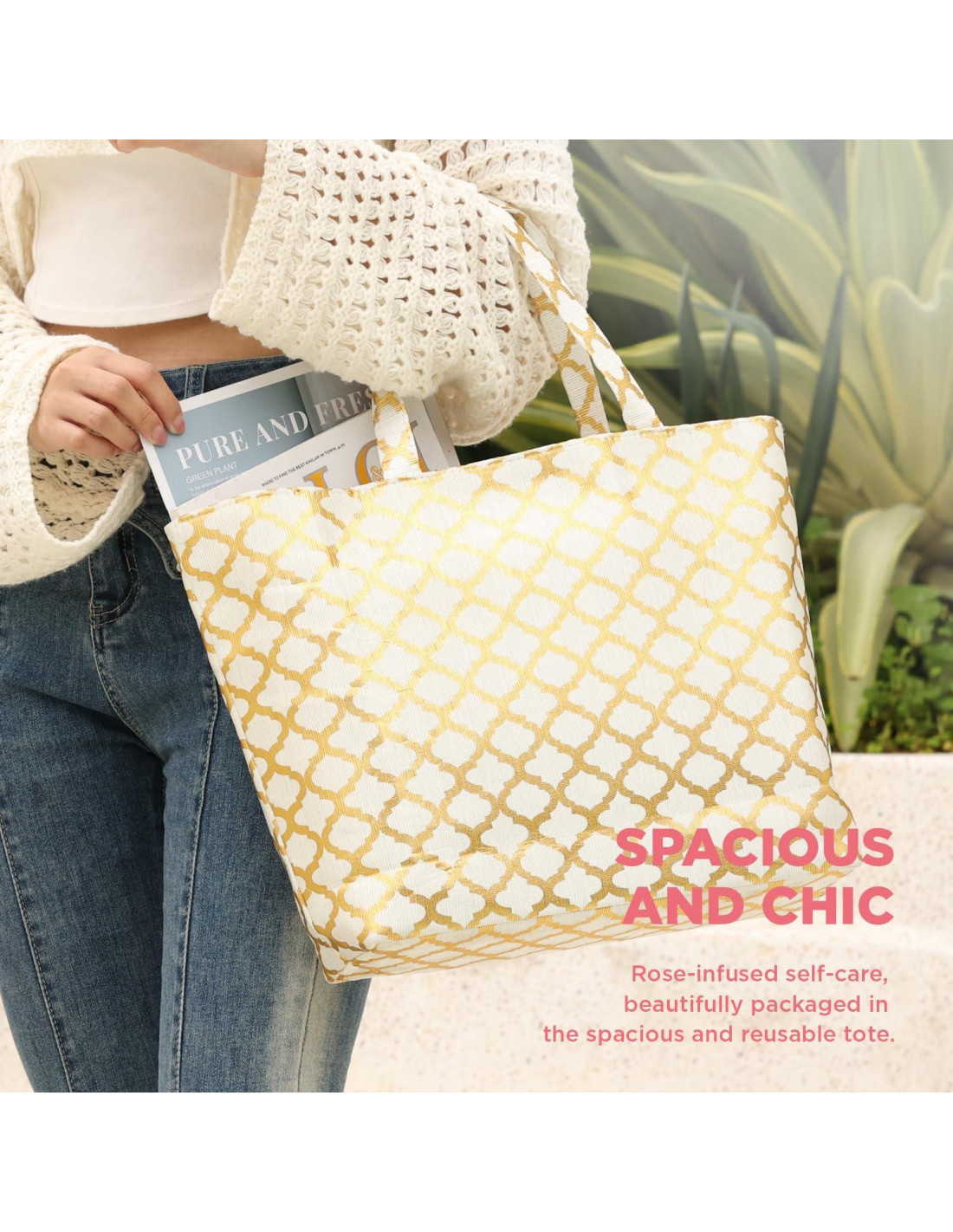 - Juego de Baño Natural: Nuestra cesta de regalo de spa está formulada con ingredientes naturales como Aceite de Semilla de Girasol, Vitamina E y Aceites Esenciales de Rosa que ayudan a nutrir la piel