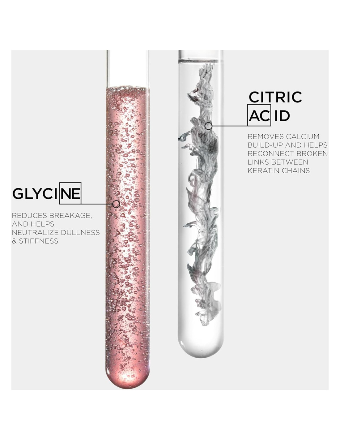 El calcio en el agua de tu ducha puede llevar a daños persistentes en el cabello dejándolo rígido y opaco. Nuestras fórmulas de doble acción innovadoras restauran hasta el 99% de la fuerza original del cabello* al eliminar la acumulación de calcio y reconectar enlaces rotos entre cadenas de queratina. Estudio instrumental, 2023 Ubicación: Francia