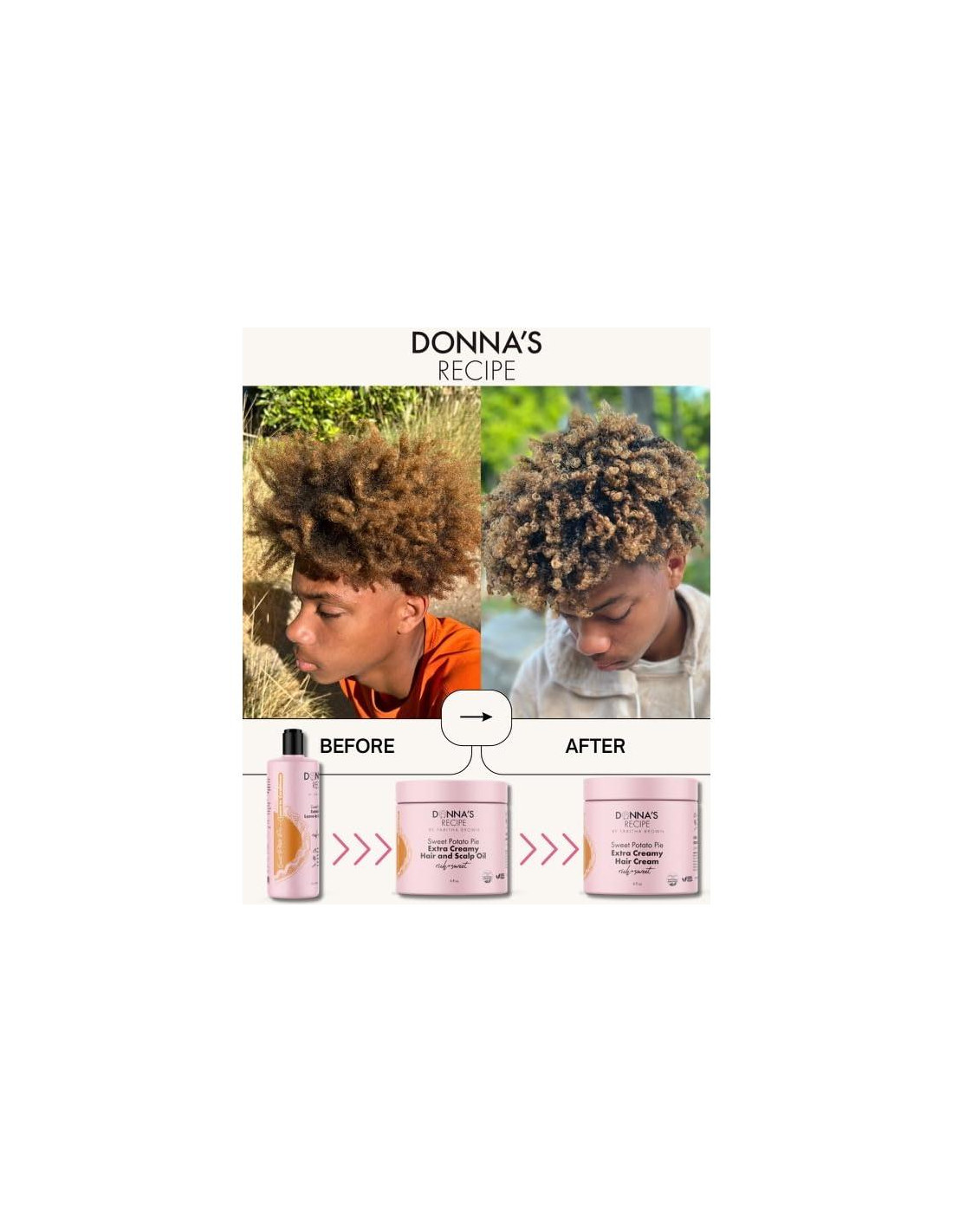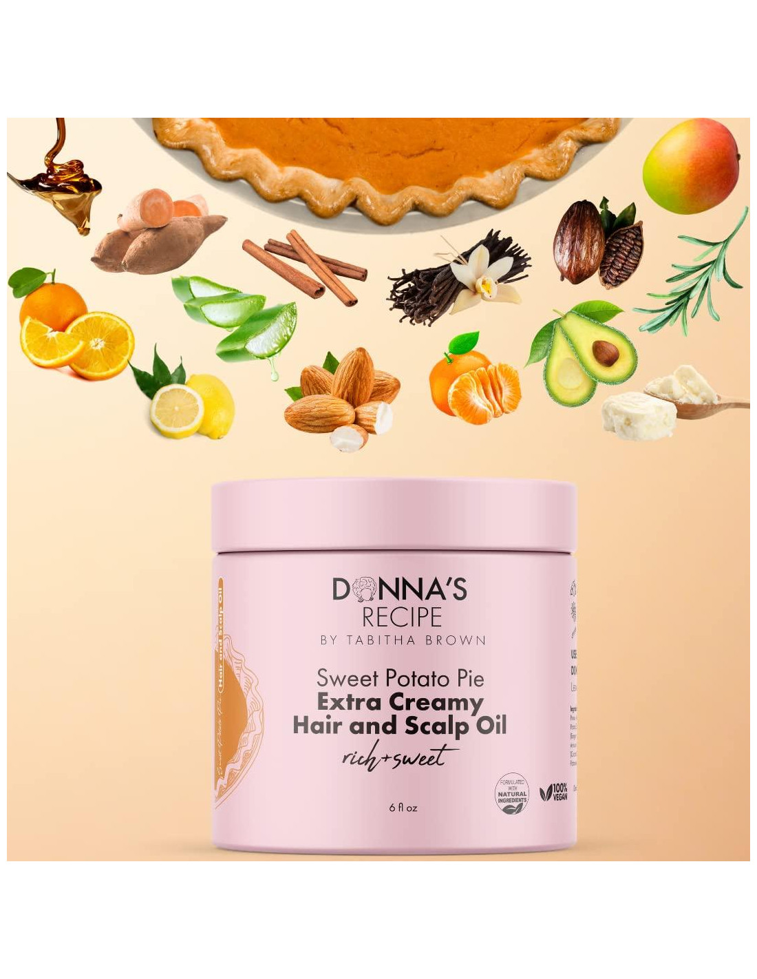 Esta fórmula inspirada en el pastel de batata celestial está diseñada para traer bondad y alegría a tu rutina de cuidado del cabello, dejando tu cuero cabelludo y cabello sintiéndose mimados y amados. Disfruta de la rica y cremosa textura de este aceite para cabello y cuero cabelludo ultra ligero. Hecho con batatas naturales, infusionado con vainilla y espolvoreado con canela cálida, es la receta perfecta para darle a tu cabello un impulso extra de humedad y brillo. El dulce aroma te transportará a un mundo de pura lujo capilar. Cada botella contiene 6oz (170 gramos) de esta extraordinaria mezcla de aceite, asegurando que tengas suficiente para mimar tu cabello y cuero cabelludo. Simplemente aplica una pequeña cantidad en cabello húmedo o seco, y estiliza como desees. Observa cómo tu cabello se vuelve manejable, desenredado y bellamente brillante. Con su textura ligera y no grasa, este aceite es perfecto para todo tipo de cabello y se puede usar tanto en cabello mojado como seco. Se absorbe rápidamente, sin dejar residuos, y se puede aplicar diariamente para obtener beneficios máximos. Consejo de Donna: Incorpora este aceite para cabello y cuero cabelludo en tu rutina de cuidado capilar como el segundo paso en tu rutina LOC (Leave-In, Oil, Cream) o como el paso final en tu rutina LCO (Leave-In, Cream, Oil). Esto sellará la humedad, proporcionará nutrición y dará a tu cabello un brillo natural. Experimenta el poder del Aceite para Cabello y Cuero Cabelludo Extra Cremoso de Receta de Donna y desbloquea el verdadero potencial de tu cabello. Abraza la alegría de tener mechones saludables y exuberantes y un cuero cabelludo revitalizado. Eleva tu rutina de cuidado capilar con la Receta de Donna.