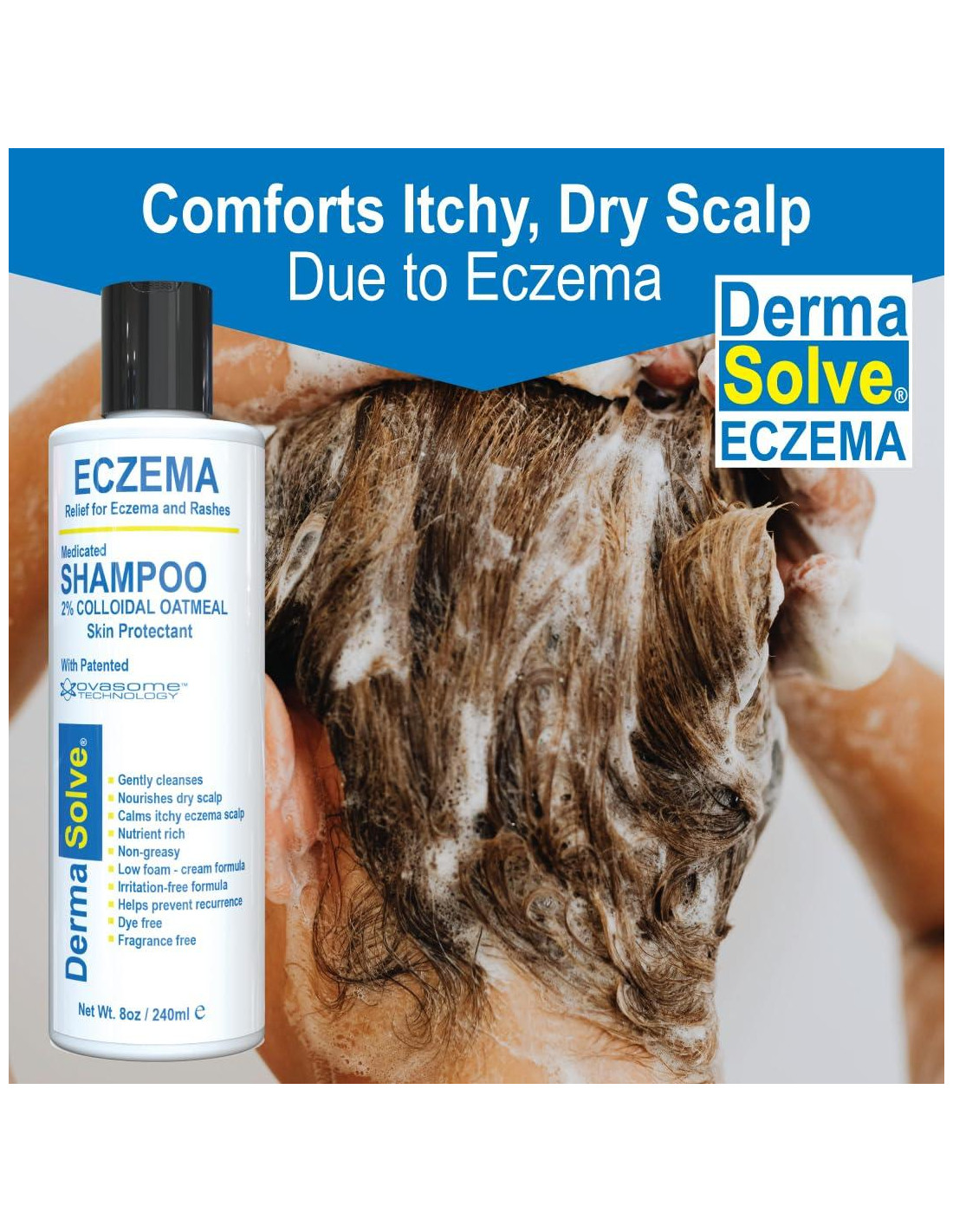 - Formulado con Avena Coloidal para ayudar a proteger y prevenir el cuero cabelludo seco y con picazón. El Champú y Acondicionador para Eczema de Dermasolve hidratará y reducirá el enrojecimiento visible para que puedas experimentar una piel suave y calmada nuevamente.