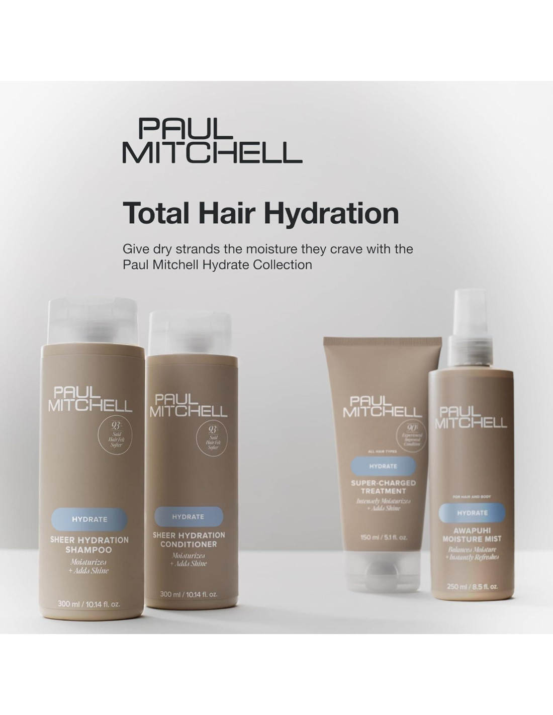 Refresca de pies a cabeza; ideal para todo tipo de cabello. Infundido con awapuhi hawaiano de origen sostenible, musgo marino irlandés y espirulina. Hidrata, protege la barrera de humedad natural y añade brillo. Los productos Paul Mitchell Awapuhi están infundidos con awapuhi hidratante de su granja fuera de la red en Hawái. Las plantas se cultivan y cosechan cuidadosamente utilizando energía solar, agua de lluvia y prácticas tradicionales. Limpiar Champú hidratante que hidrata y revive el cabello seco mientras aumenta el brillo. Acondicionar Acondicionador hidratante que hidrata y revive el cabello seco mientras ayuda a prevenir daños. Tratar Tratamiento semanal de hidratación profunda que deja las hebras hidratadas, con un aspecto saludable y más manejables. Rocío Spray hidratante que realza el brillo, infundido con awapuhi hawaiano, refresca de pies a cabeza.