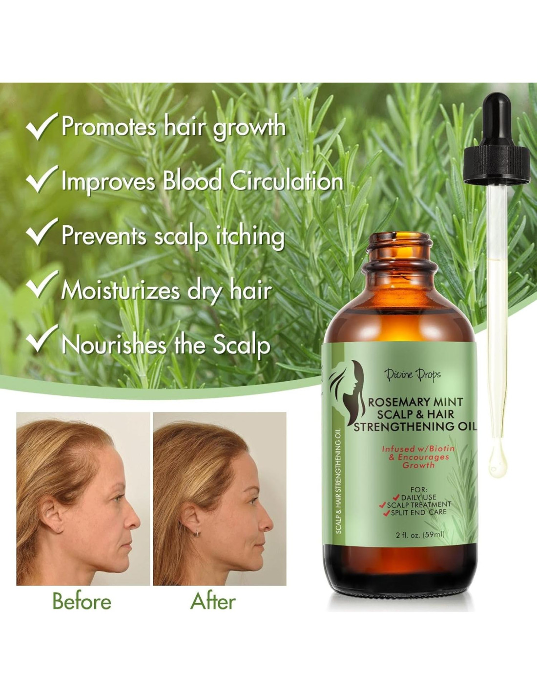 - [ACEITE DE ROMERO 100% PURO] - El Aceite de Romero es 100% puro, extracción por presión en frío, orgánico y no contiene ingredientes artificiales. Los aceites esenciales de romero para uso en la piel como un aceite limpiador natural con antioxidantes son excelentes para el cuidado de la belleza. Nuestro versátil Aceite de Romero y Menta para Fortalecimiento del Cuero Cabelludo y Cabello promueve un cabello radiante para todos los tipos de cabello y nutre profundamente los tipos 3A a 4C, cabello tratado químicamente, trenzas, extensiones y cabello de bajo y alto nivel de porosidad.