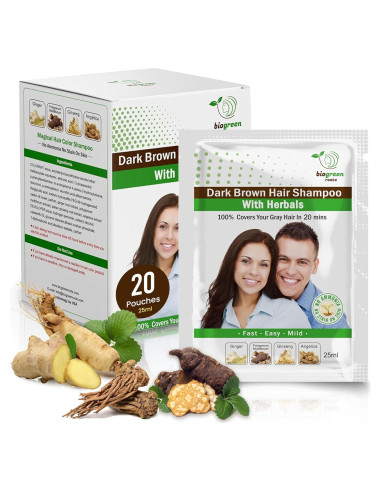 - CHAMPÚ LUXUOSO PARA CABELLO MARRÓN NEGRO: Transforma tu cabello, presentando una mezcla de color de cabello sin amoníaco y sin parabenos y extractos herbales como Jengibre, Polygonum Multiflorum, Angélica y Ginseng. Ideal para aquellos que buscan un cabello saludable que nutra y fortalezca desde la raíz hasta las puntas mientras cubre efectivamente el cabello canoso.