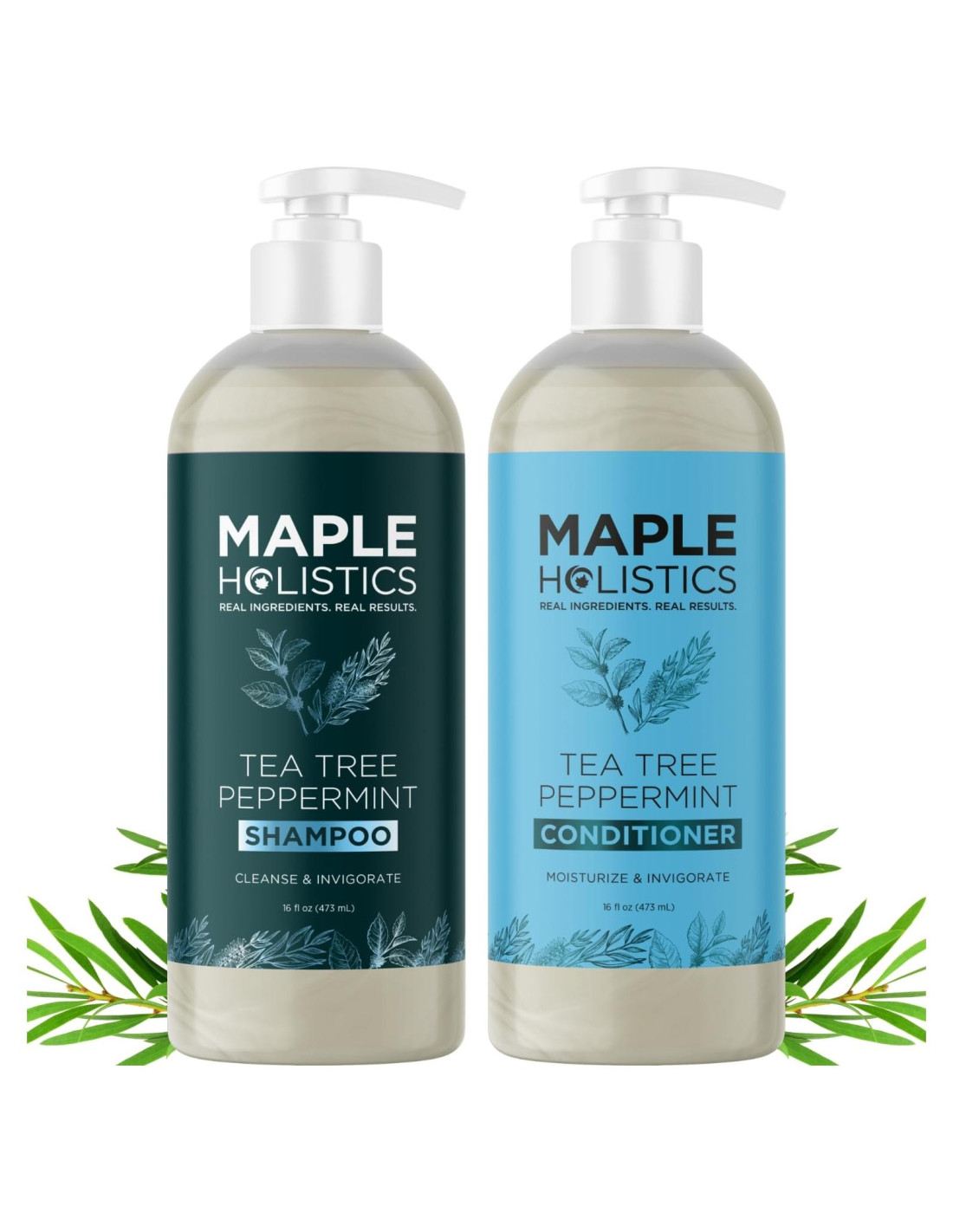 - Calidad de Maple Holistics - Redefine tu cuidado del cabello con nuestro set de champú y acondicionador de aceite de árbol de té, fórmula libre de sulfatos, parabenos y silicona para un cuidado del cabello sin culpa con ingredientes naturales