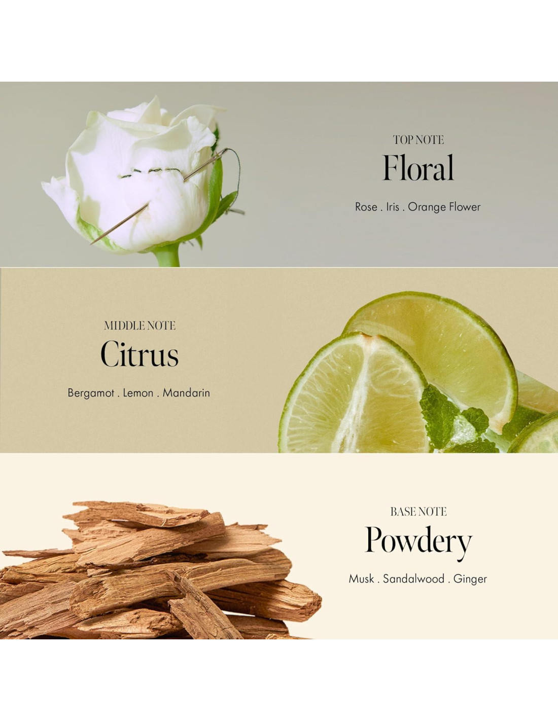 - Experiencia sensorial con una fragancia distintiva - Disfruta de una fragancia lujosa y duradera que evoluciona a lo largo del día: delicadas notas florales de salida, corazón cítrico fresco y un suave acabado empolvado, una fragancia irresistible que perdura sin ser abrumadora.
