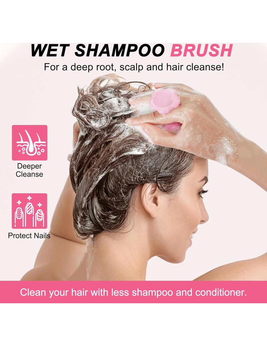 - Con Cepillo de Silicona: Púas suaves que efectivamente limpian el cuero cabelludo sin rasguñar, que son lo suficientemente flexibles para moverse a través del cabello sin enredarse ni tirar. Disfrute del spa para la cabeza durante el proceso de limpieza del cabello y el cuero cabelludo.