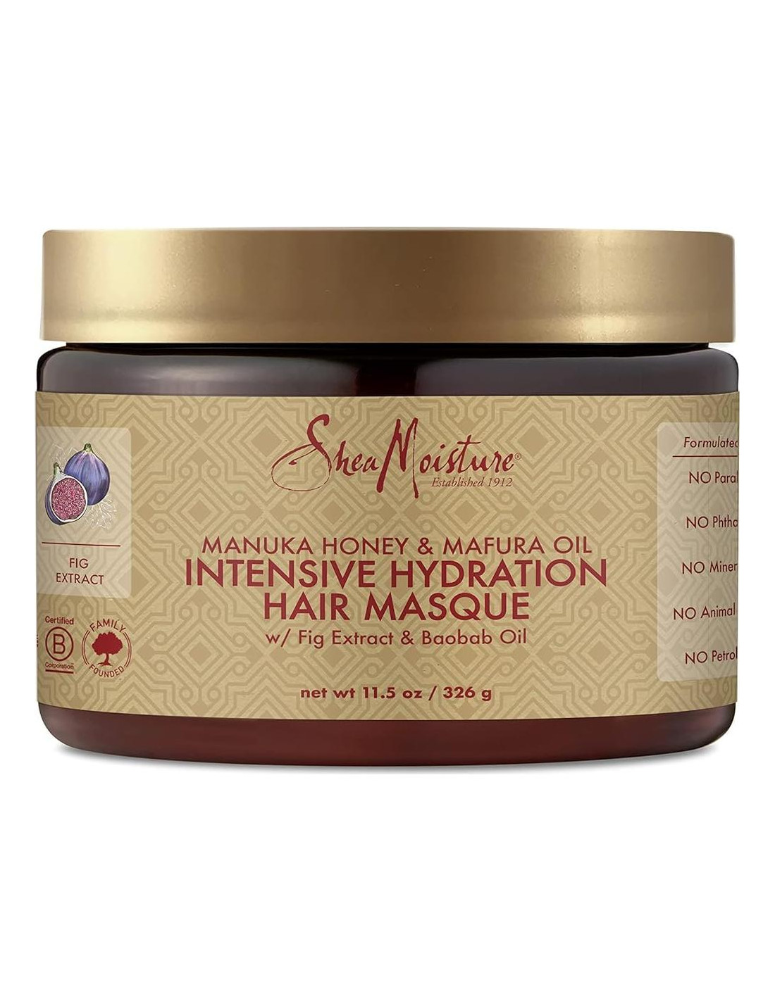 - La Mascarilla para el Cabello de Hidratación Intensiva de SheaMoisture acondiciona profundamente el cabello seco y dañado con Manteca de Karité orgánica certificada, Miel, Aceites de Mafura y Baobab para suavizar y fortalecer los folículos para un cabello más fuerte y saludable.