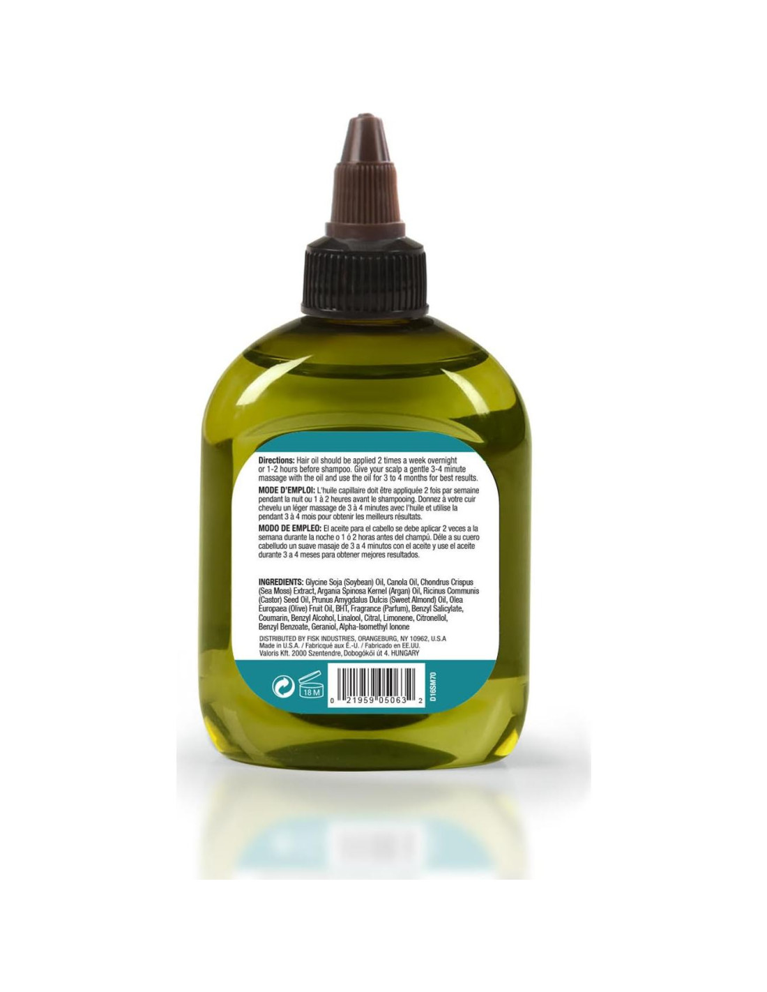 El Aceite Capilar Premium es un tratamiento capilar natural infusionado con extracto de musgo marino, conocido por su rico perfil de nutrientes que incluye vitaminas, minerales y antioxidantes. Este aceite está diseñado para fortalecer los folículos capilares, reducir la rotura y caída del cabello, y promover un crecimiento capilar más saludable y grueso. El musgo marino es un alga rica en nutrientes que contiene vitaminas y minerales esenciales como vitamina A, vitamina K, yodo, hierro y calcio. Estos nutrientes juegan un papel en el mantenimiento de la salud capilar en general. Algunas personas afirman que el musgo marino puede ayudar a engrosar y fortalecer las hebras de cabello, potencialmente reduciendo la rotura y mejorando la textura general del cabello. Se cree que el musgo marino nutre el cuero cabelludo, mejora la elasticidad del cabello y realza la salud capilar en general. Cuando se usa regularmente, el aceite capilar anticaída de musgo marino puede ayudar a mantener un cabello fuerte y resistente y minimizar la pérdida de cabello debido a la rotura. 210 ml (7.1 onzas) El aceite capilar debe aplicarse 2 veces a la semana durante la noche o 1-2 horas antes del champú. Dale a tu cuero cabelludo un suave masaje de 3-4 minutos con el aceite y úsalo durante 3-4 meses para obtener los mejores resultados. Glycine Soja (Aceite de Soja), Aceite de Canola, Extracto de Chondrus Crispus (Musgo Marino), Aceite de Argania Spinosa (Argán), Aceite de Ricinus Communis (Ricino), Aceite de Prunus Amygdalus Dulcis (Almendra Dulce), Aceite de Olea Europaea (Oliva), BHT, Fragancia, Benzil Salicilato, Cumarina, Alcohol Bencílico, Linalool, Citral, Limoneno, Citronelol, Benzoato de Bencilo, Geraniol, Alpha-Isomethyl lonone