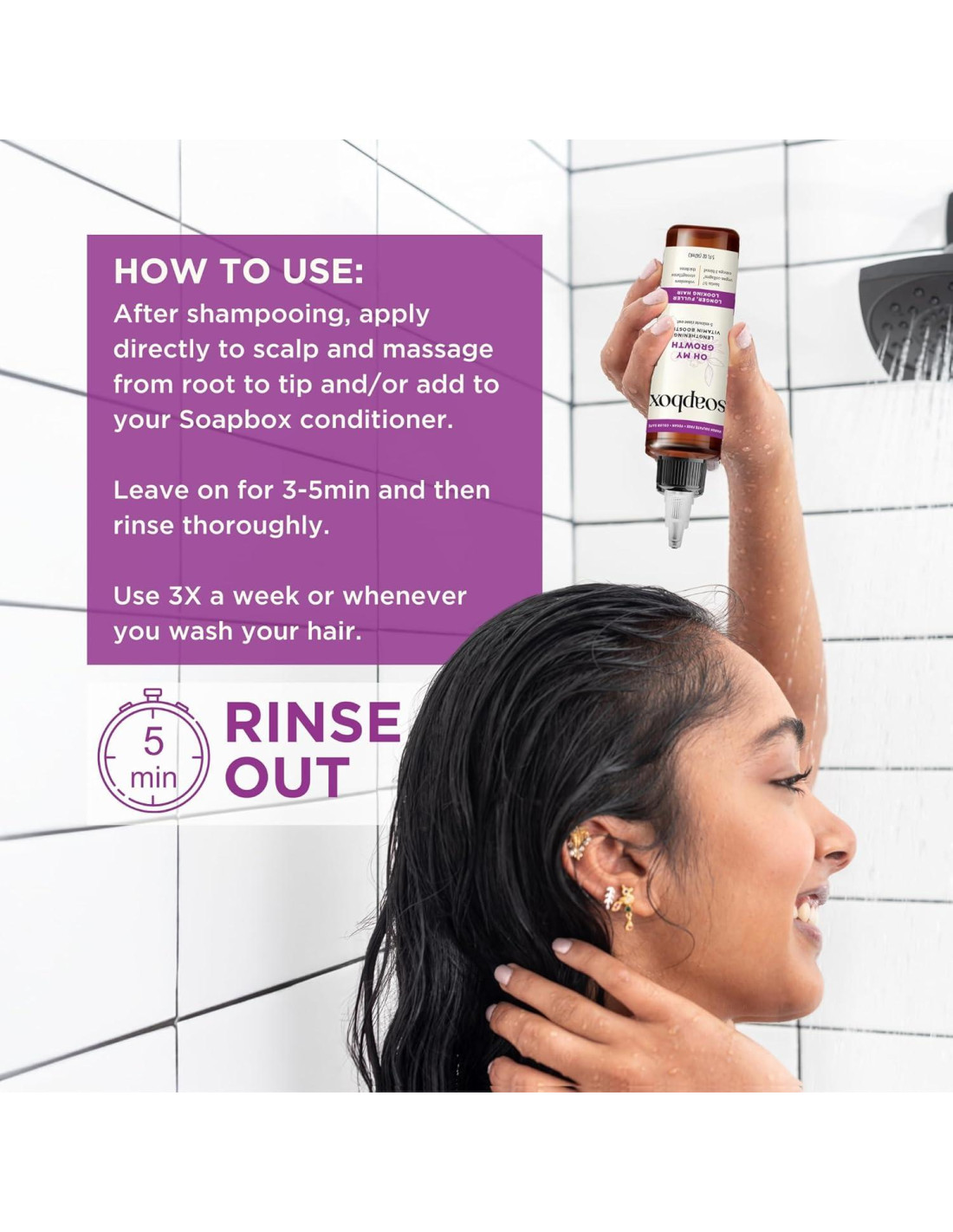 Tratamiento acelerador de vitaminas para hombres y mujeres de todos los tipos de cabello. ¿Buscas un cabello más fuerte, más largo y con un aspecto más saludable? Nuestro tratamiento capilar potenciará tu crecimiento mientras nutre el cuero cabelludo y previene la rotura. La Biotina B7 promueve la apariencia de un cabello más abundante, mientras que la Vitamina A previene la rotura y la Vitamina C nutre el cuero cabelludo. El colágeno vegano promueve la apariencia de un cabello más fuerte y abundante de la raíz a la punta. La mezcla de Omega 3 ayuda a mejorar el grosor visible en nuestra fórmula no grasa y fácil de usar. Libre de crueldad y 100% vegano, libre de parabenos y silicona y seguro para el color del cabello. La botella de plástico está hecha de plástico reciclable, por lo que puedes sentirte tan bien como se ve tu cabello al usar nuestro producto. Para usar: masajea en el cabello lavado con champú 3-5 veces a la semana y enjuaga después de 5 minutos.