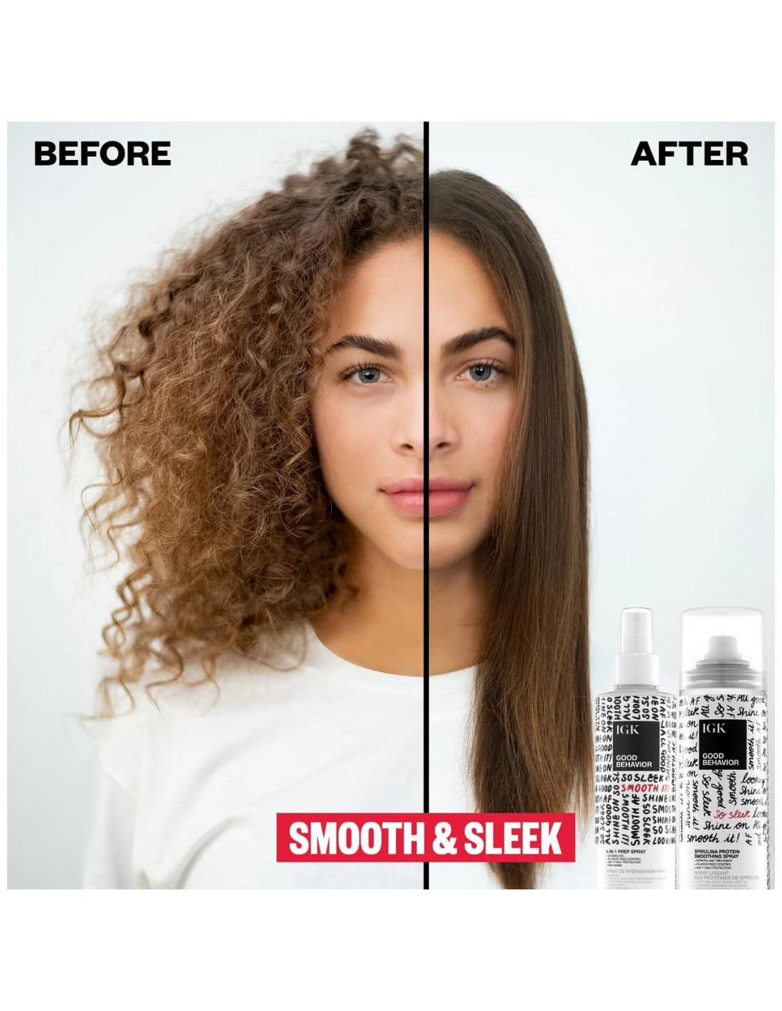 - Spray Alisador de Proteína de Espirulina GOOD BEHAVIOR: Este spray de peinado innovador imita las propiedades de recubrimiento y alisado de un tratamiento de queratina cuando se activa por calor.