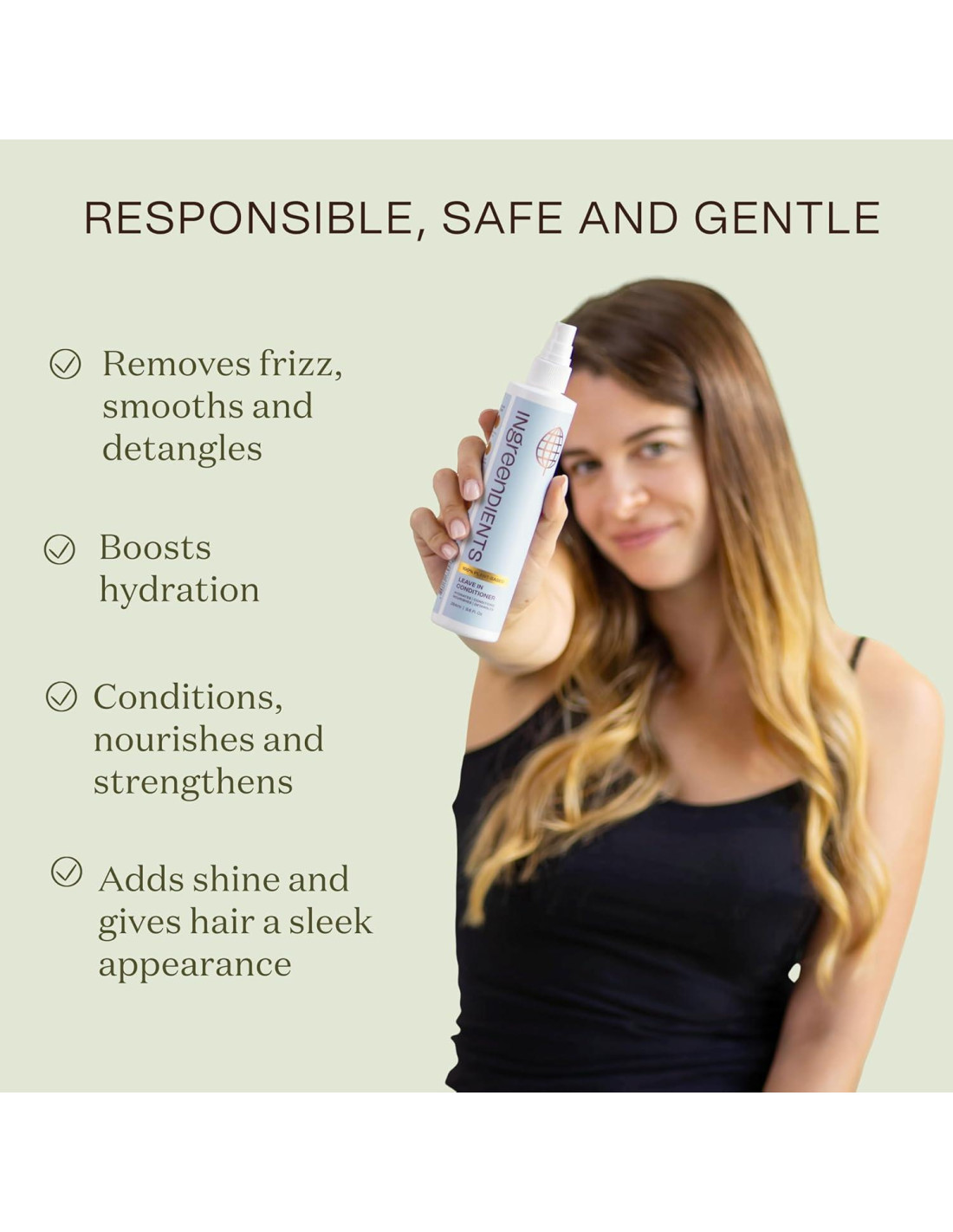 - SIN SILICONA Y SIN SULFATOS ACONDICIONADOR SIN ENJUAGUE PARA CABELLO SALUDABLE Y BRILLANTE - Este desenredante 100% de plantas está formulado para reducir el frizz, desenredar y alisar tu cabello mientras al mismo tiempo añade brillo y elasticidad a tu cabello.