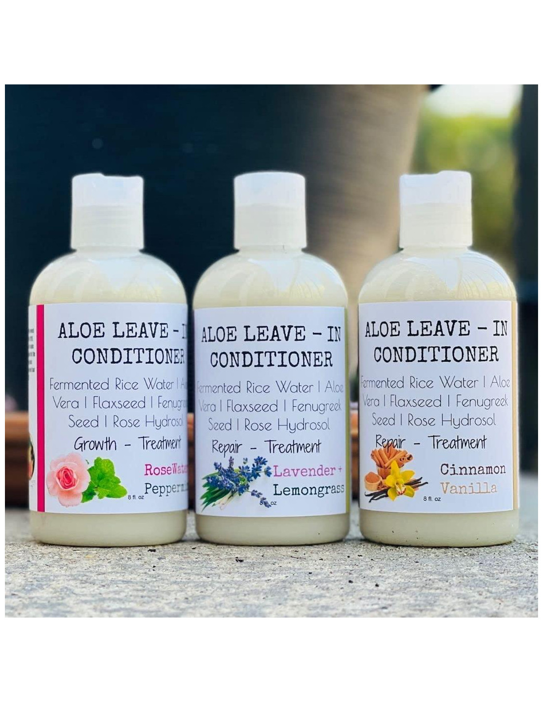 Aloe Vera | Acondicionador Sin Enjuague | Aloe Vera | Hidratante para el Crecimiento del Cabello | Gel de Semilla de Lino | Reparación del Cabello Dañado Nuestro Acondicionador Sin Enjuague de Aloe es un producto de cuidado del cabello 6 en 1. Hecho a mano para proporcionar humedad a todos los tipos de cabello mientras define tu patrón natural de cabello. Este Acondicionador Sin Enjuague, hidratará tu cabello, mientras proporciona suficiente deslizamiento para un desenredado fácil. Después de usar este Acondicionador Sin Enjuague de Aloe, notarás una versión más saludable, suave y brillante de tu cabello. Este hidratante contiene ingredientes orgánicos de calidad, como semillas de lino orgánicas, semillas de fenogreco orgánicas, agua de arroz fermentada y hoja de aloe vera. El Hidratante para el Crecimiento del Cabello con Agua de Arroz tiene un aroma natural con aceite esencial 100% puro. Actualmente ofrecemos 3 aromas: Lavanda y Hierba de Limón, Lavanda y Menta, Canela y Vainilla.