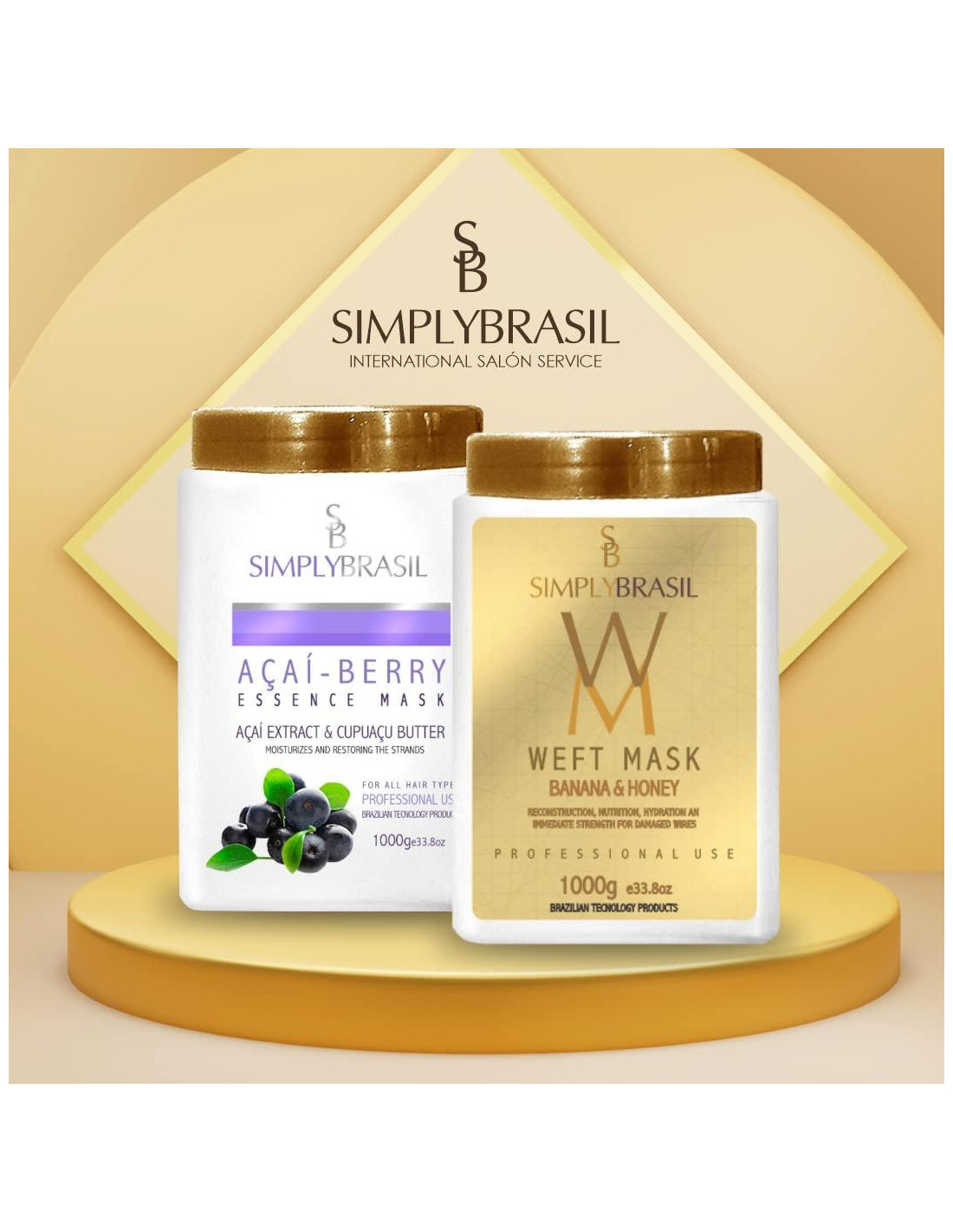 Su propósito es hidratar y nutrir el cabello. Con la Máscara de Esencia de Aaí-Berry de Simply Brasil que son poderosos humectantes que actúan en hilos fuertes y reconstruidos. El cabello es brillante y suave. Cómo usar: Aplica la Máscara de Esencia de Aaí-Berry de Simply Brasil en el cabello mojado, a lo largo de las hebras, masajeando suavemente. Deja actuar durante unos minutos. Enjuaga. Controla el proceso una vez a la semana, o según lo necesite tu cabello.