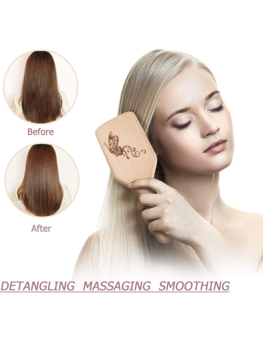 - Beneficios: El cepillo de cerdas de jabalí hecho de 70% cabello de jabalí y 30% pines de nylon penetra fácilmente a través del cabello normal y grueso, su uso diario ayuda a redistribuir el aceite desde el cuero cabelludo hasta las puntas del cabello. Cura el cabello seco y quebradizo mientras elimina el exceso de aceite, hace que el cabello sea suave y añade brillo