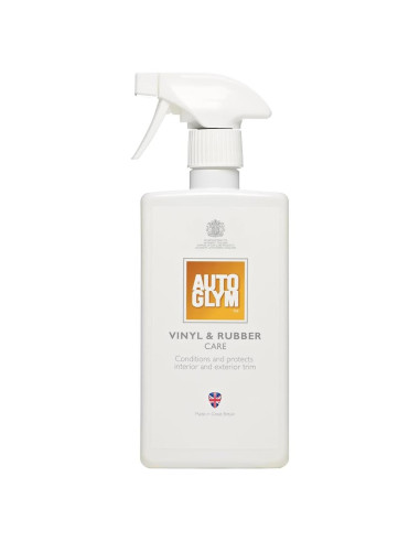 Autoglym Cuidado de Vinilo y Goma acondiciona y protege superficies interiores y forma una barrera antiestática dura pero flexible contra la humedad, el polvo, las manchas y la decoloración. Polímeros y emulsionantes mezclados limpian suavemente todos los plásticos, vinilo y goma, dejando un hermoso brillo protector. Se puede usar en tableros, paneles de instrumentos, PVC, revestimientos de puertas y asientos.